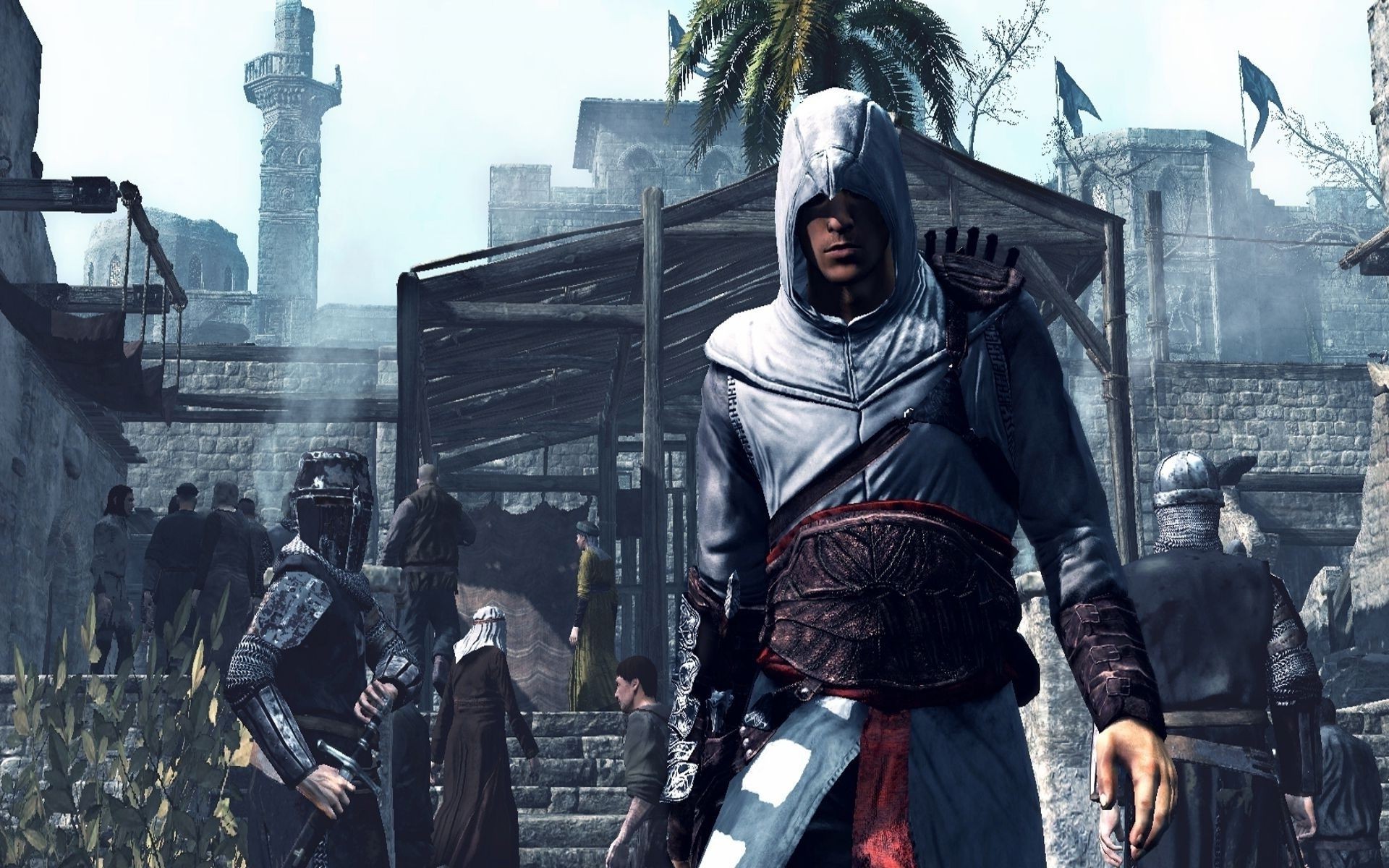 Un hombre encapuchado con los ojos puestos camina por el casco antiguo