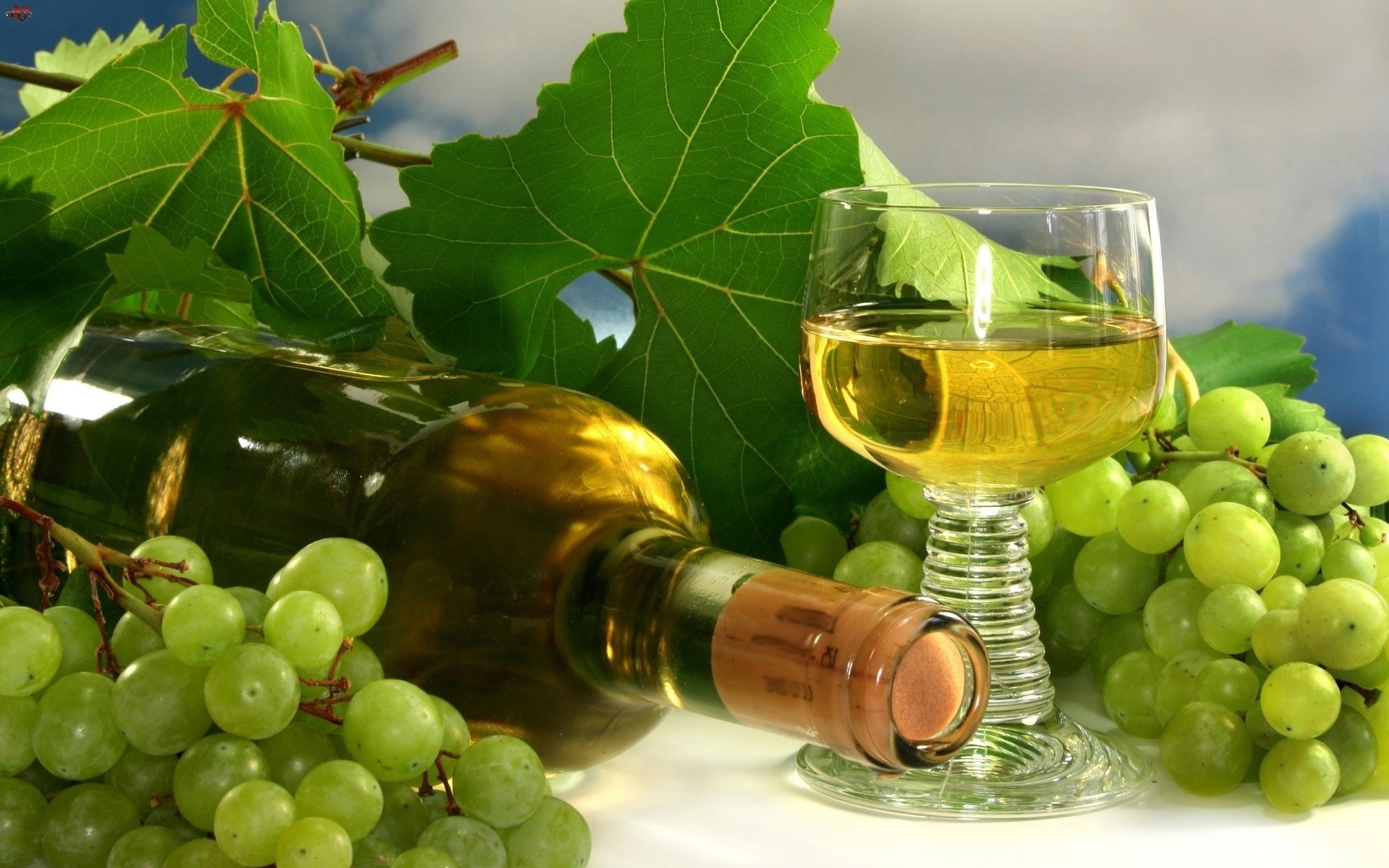 Botella y Copa de vino con racimos de uvas