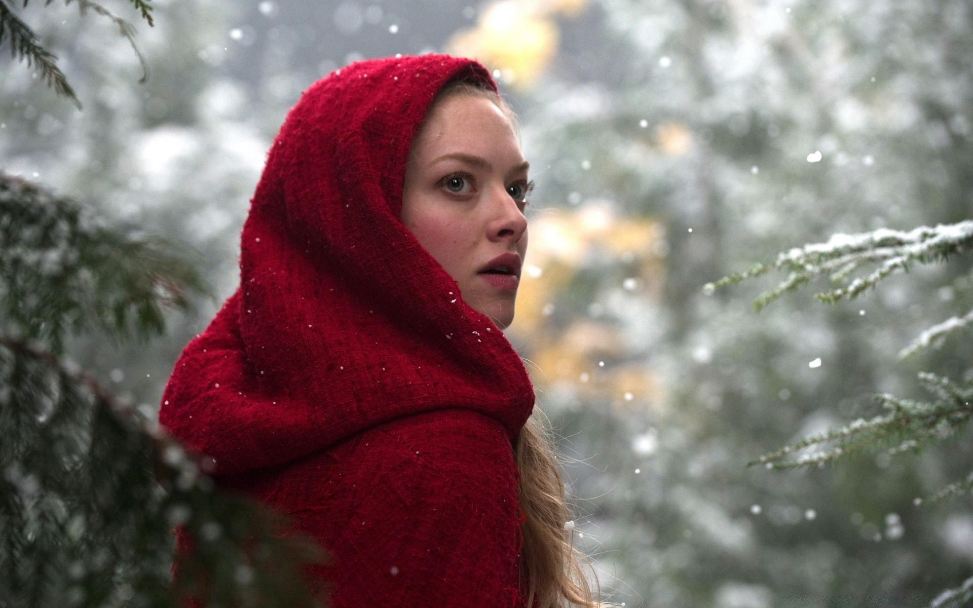 Foto de una mujer en rojo en invierno