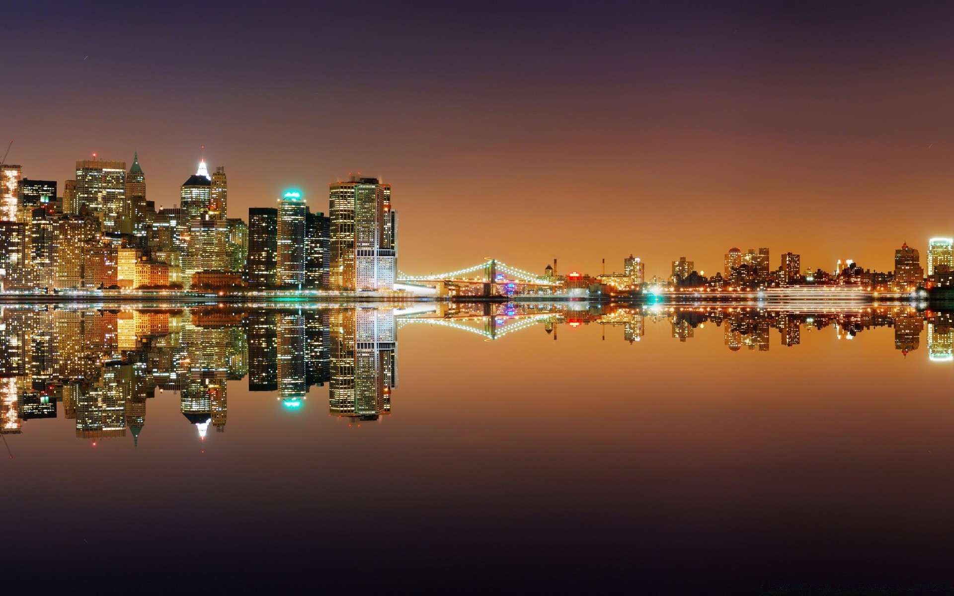 Luces de la gran ciudad en el fondo de un río tranquilo