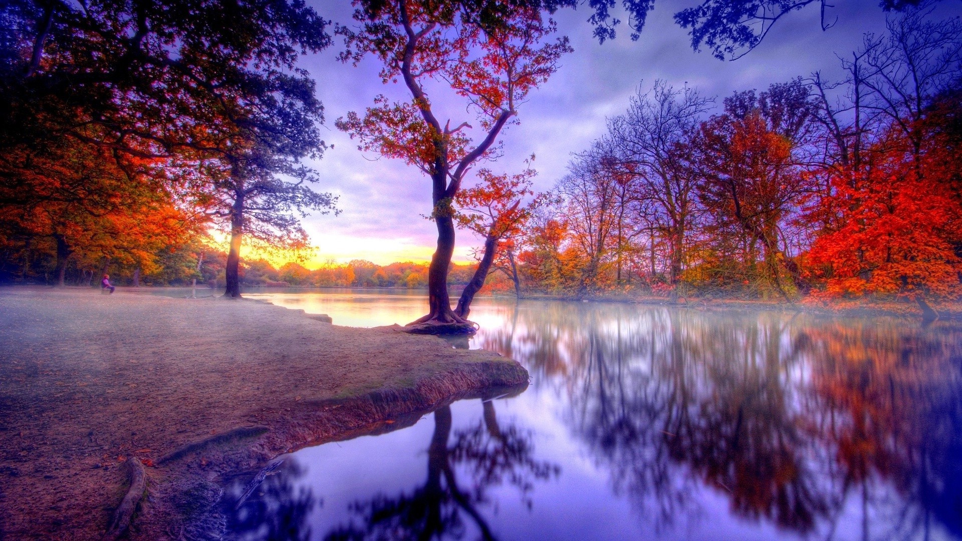 Callejón de árboles de otoño esperando la lluvia del cielo sombrío