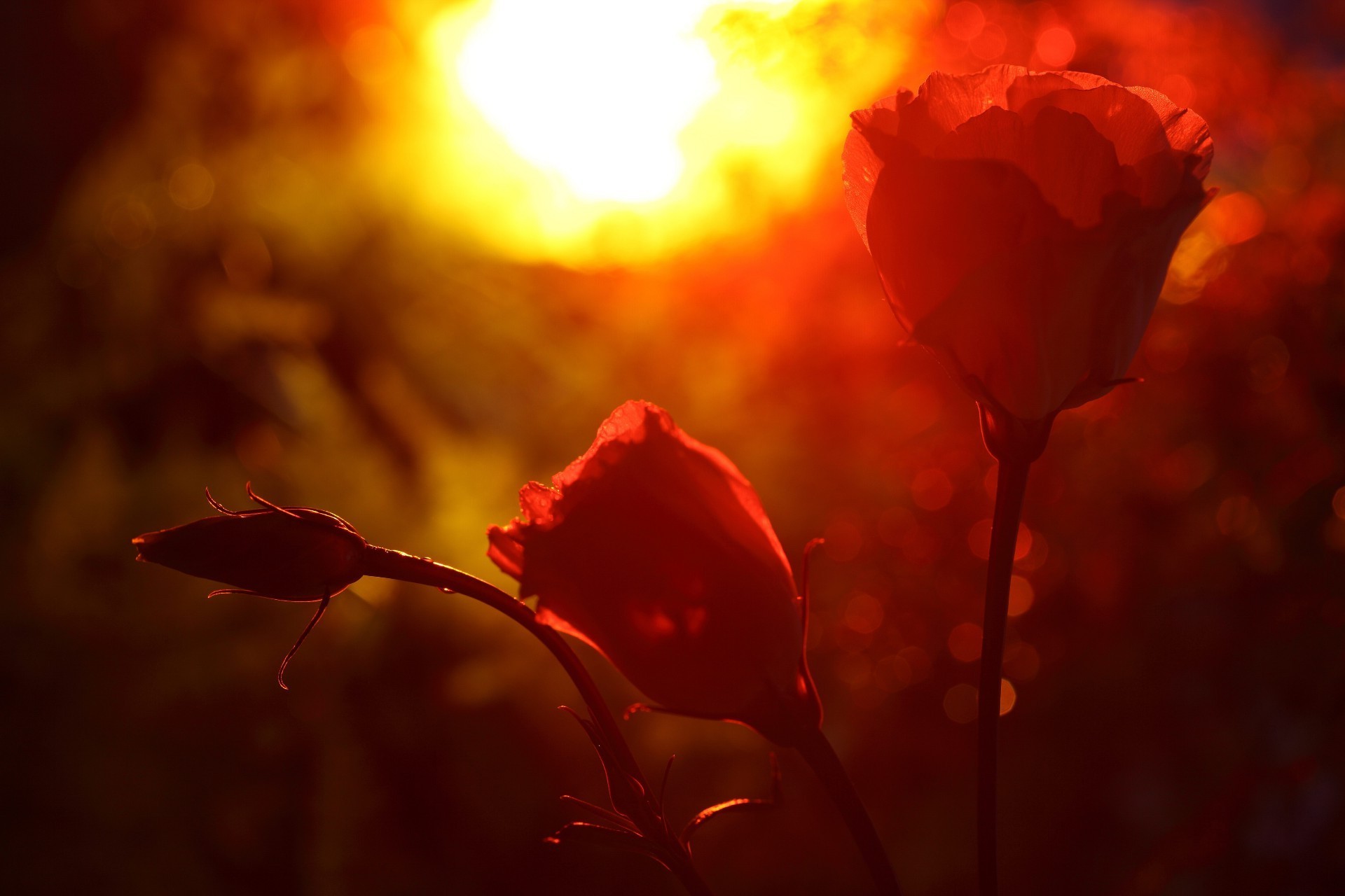 Flores en la puesta de sol naranja