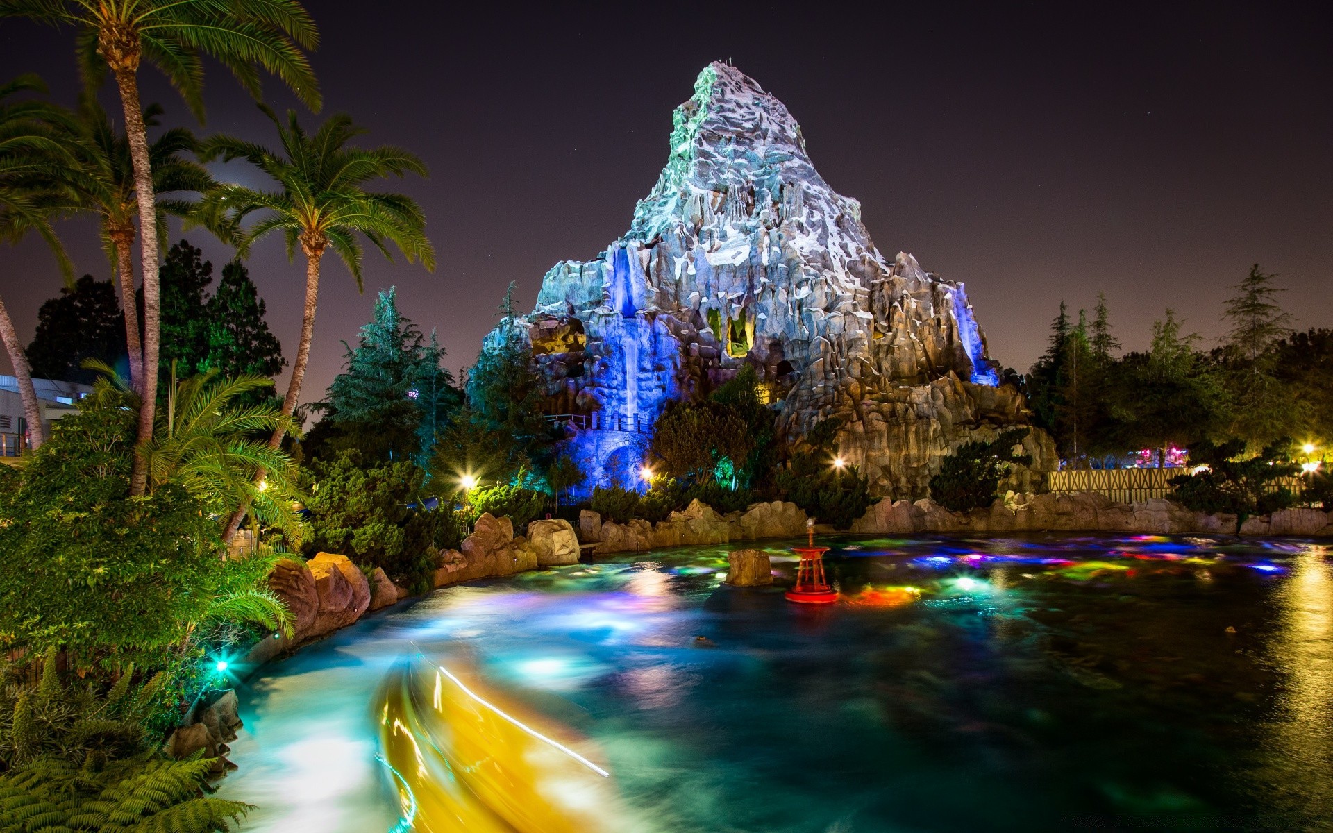 Colinas de la Luna y palmeras. Hermoso paisaje nocturno