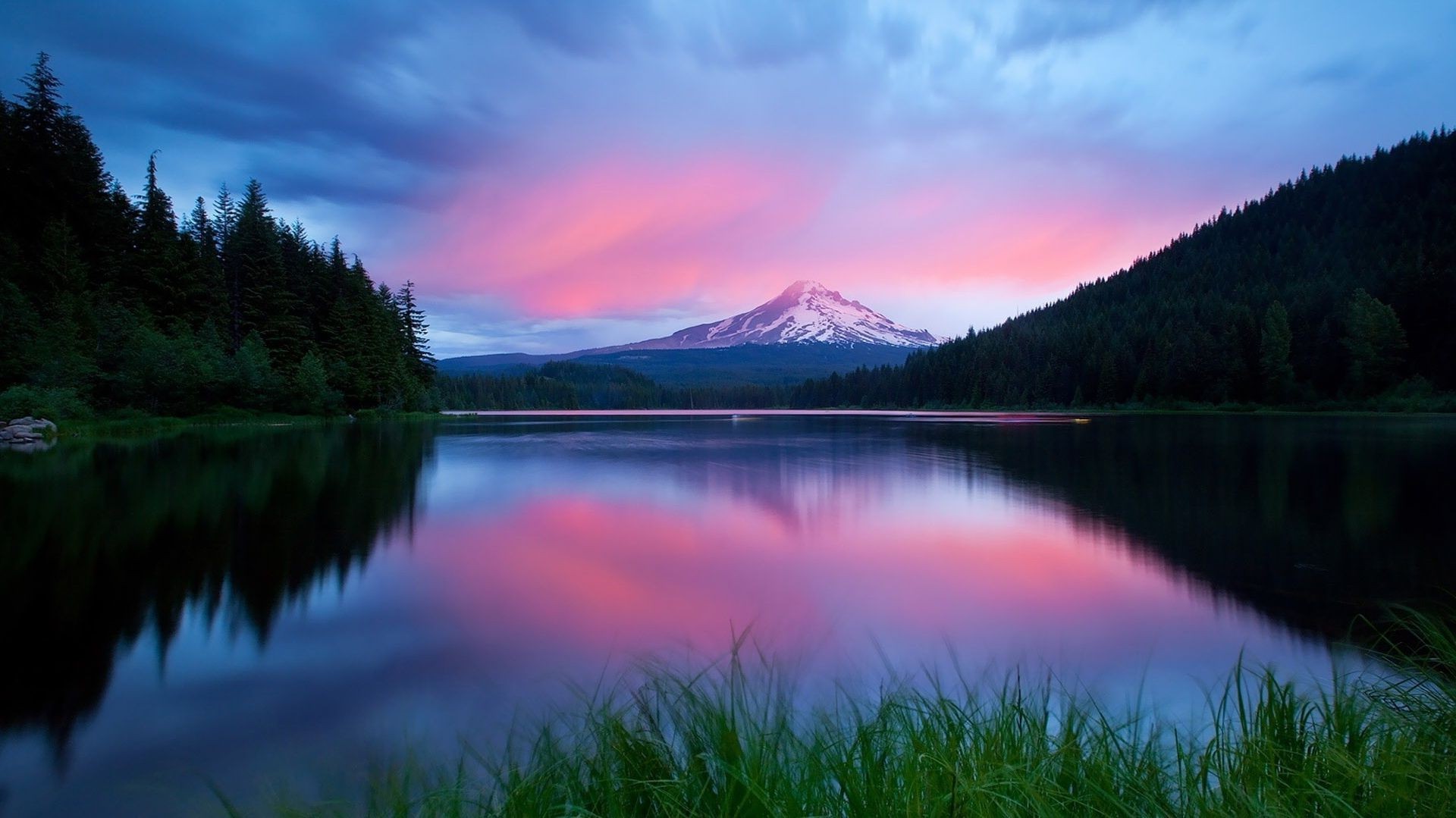 Hermoso paisaje del lago en el que se refleja la puesta de sol