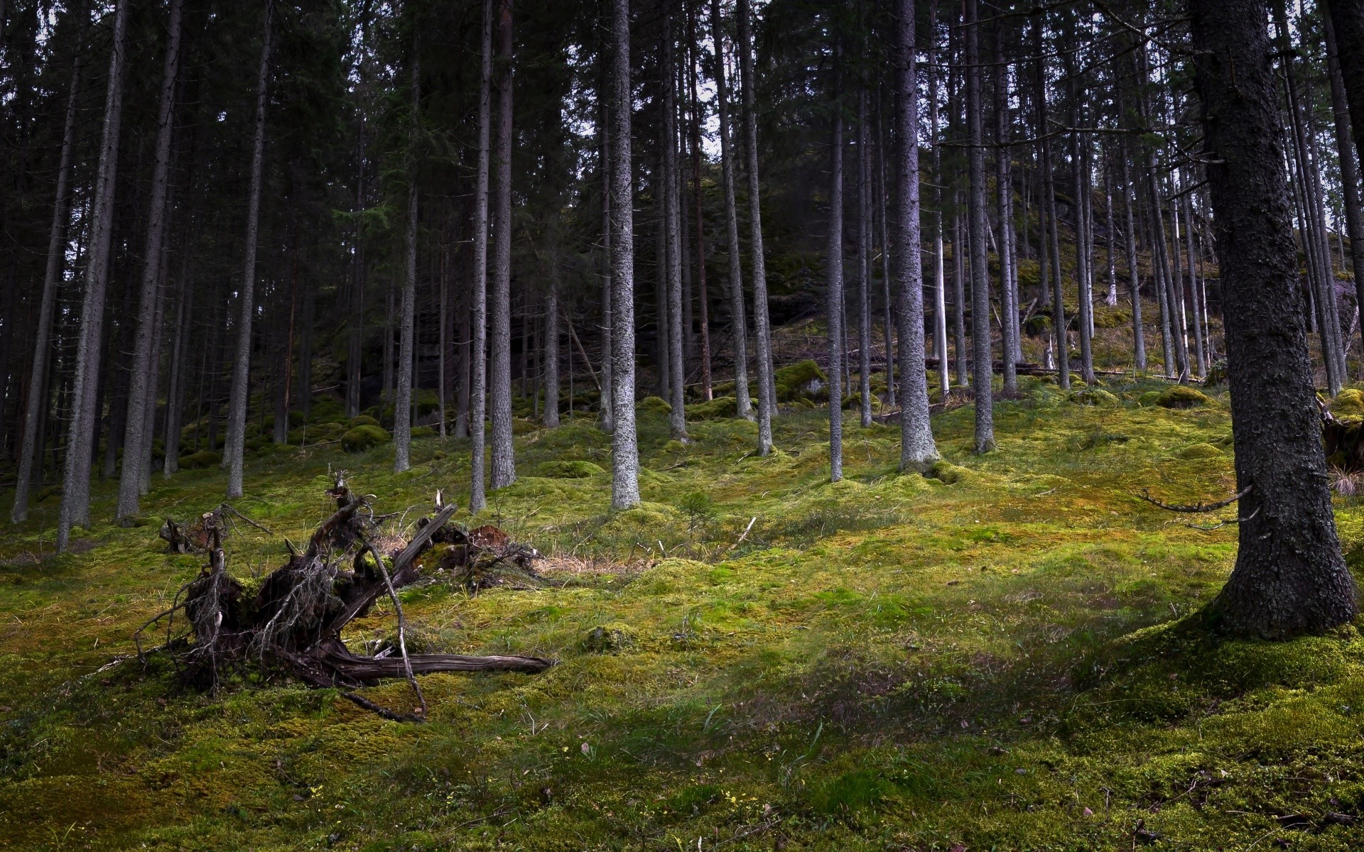 Sutiles chorros de cascada bañan los árboles en la ladera de la montaña