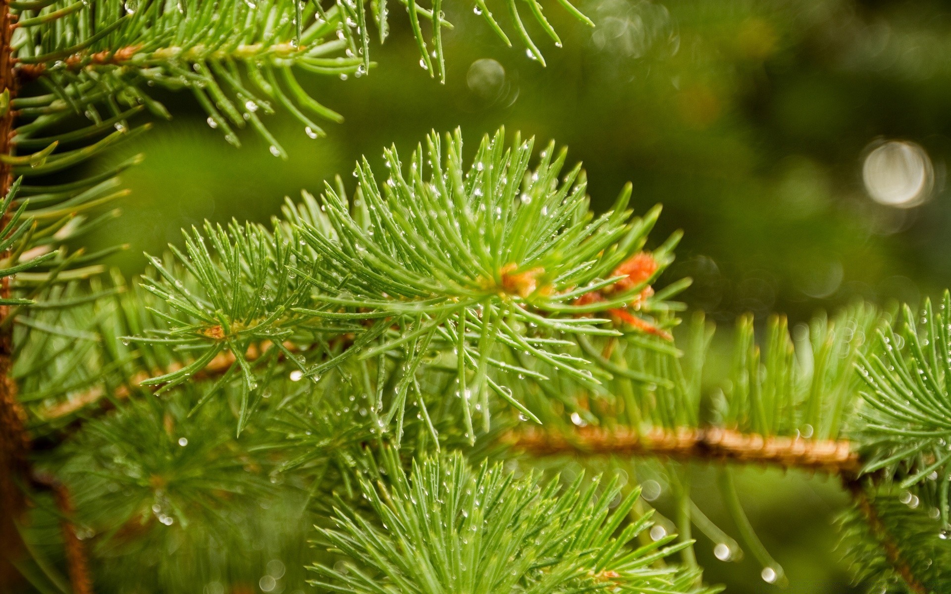 Rocío de la mañana en agujas de abeto