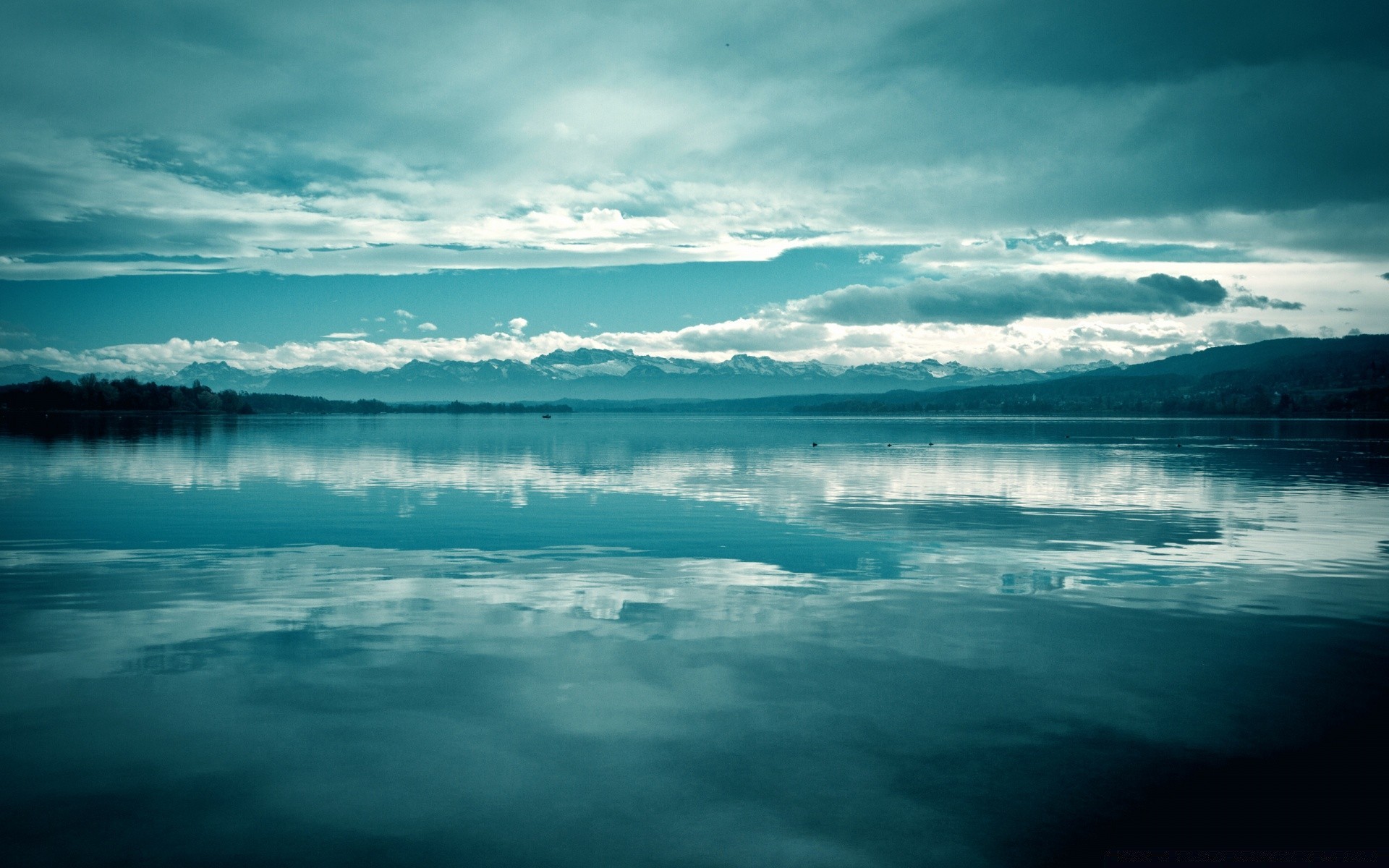 Nubes en el cielo. Reflejo del cielo en el lago. Hermoso paisaje