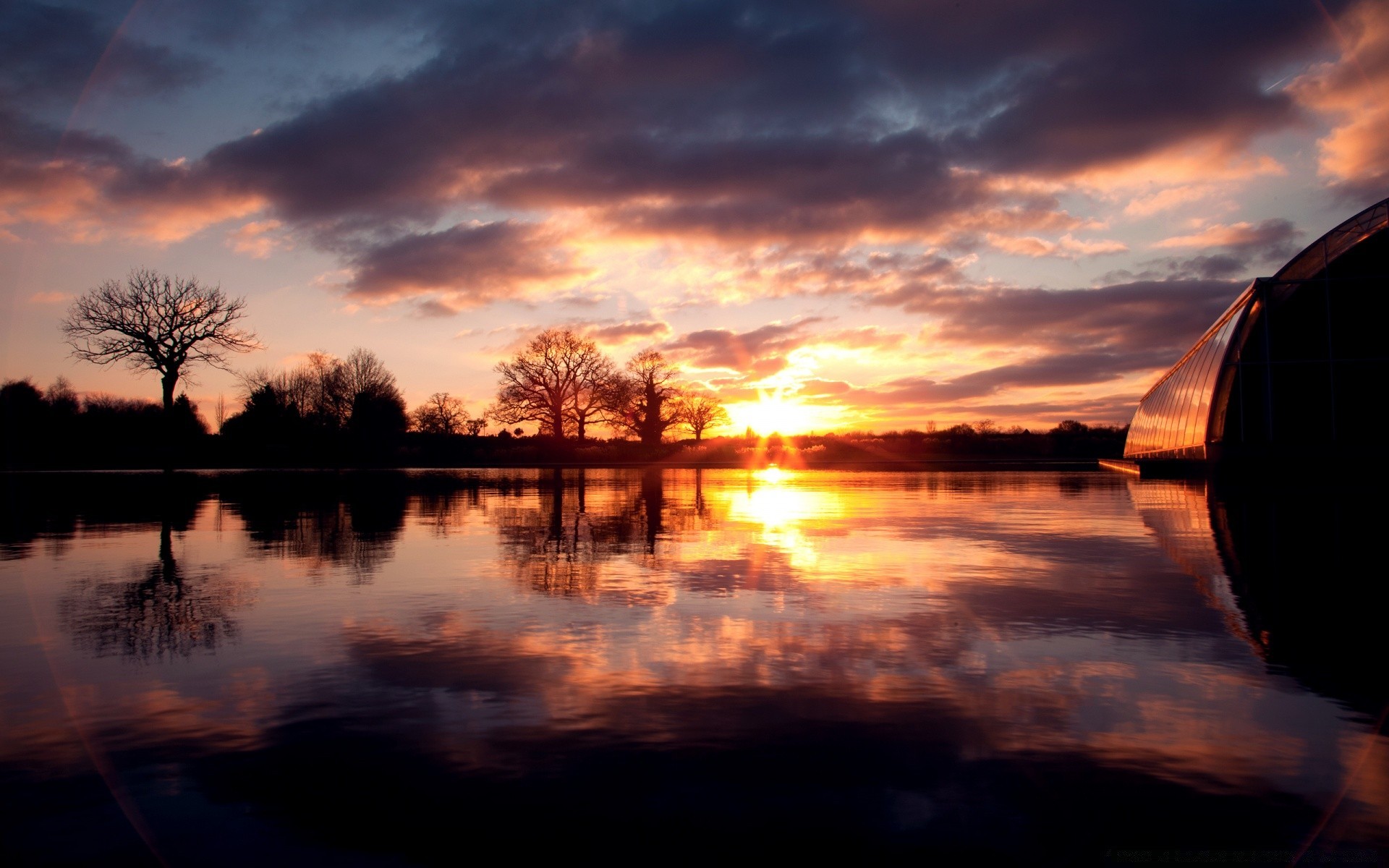 Puesta de sol en un lago solitario