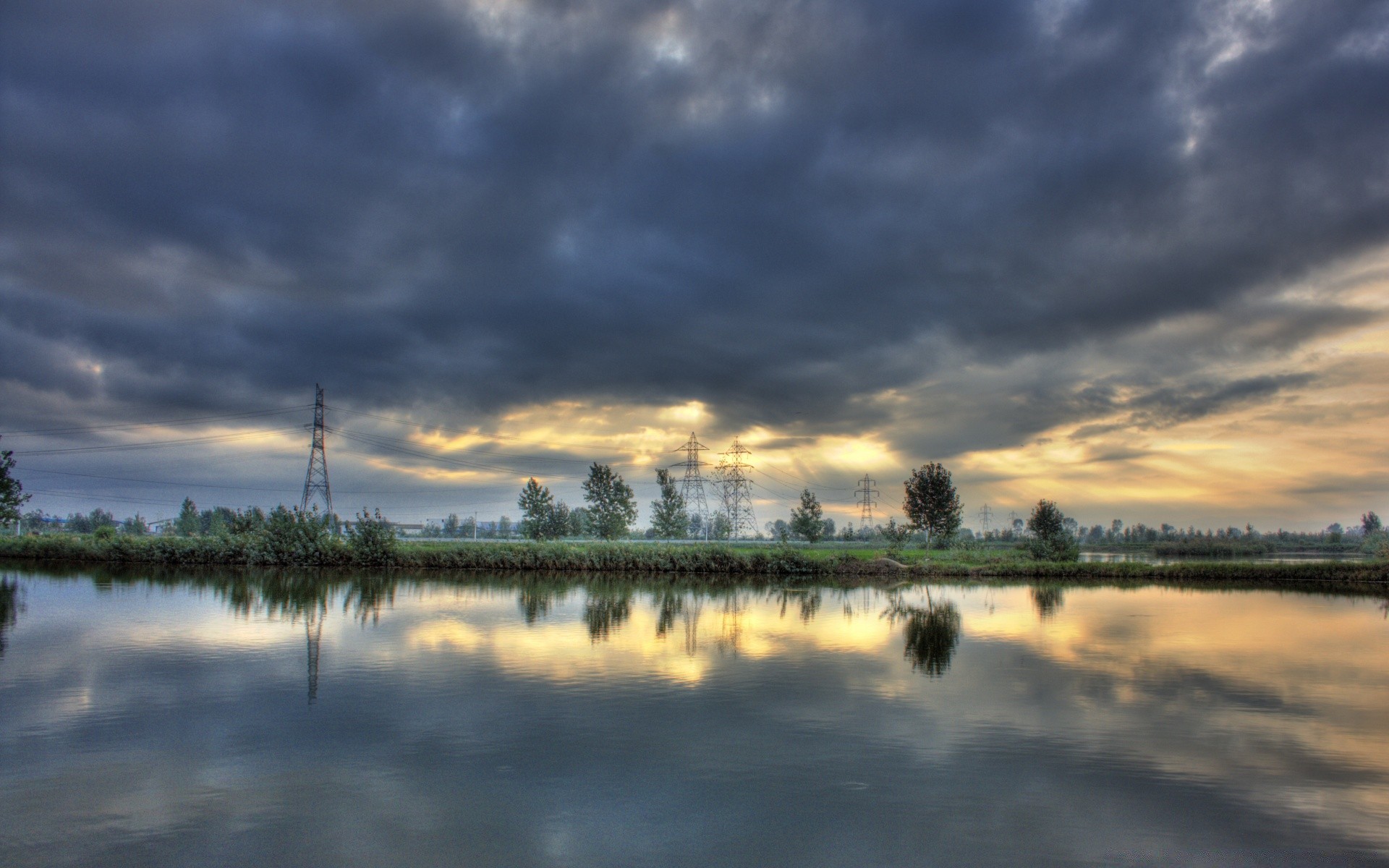 Puesta de sol de otoño en el lago entre los árbolesPuesta de sol de otoño en el lago entre los árboles