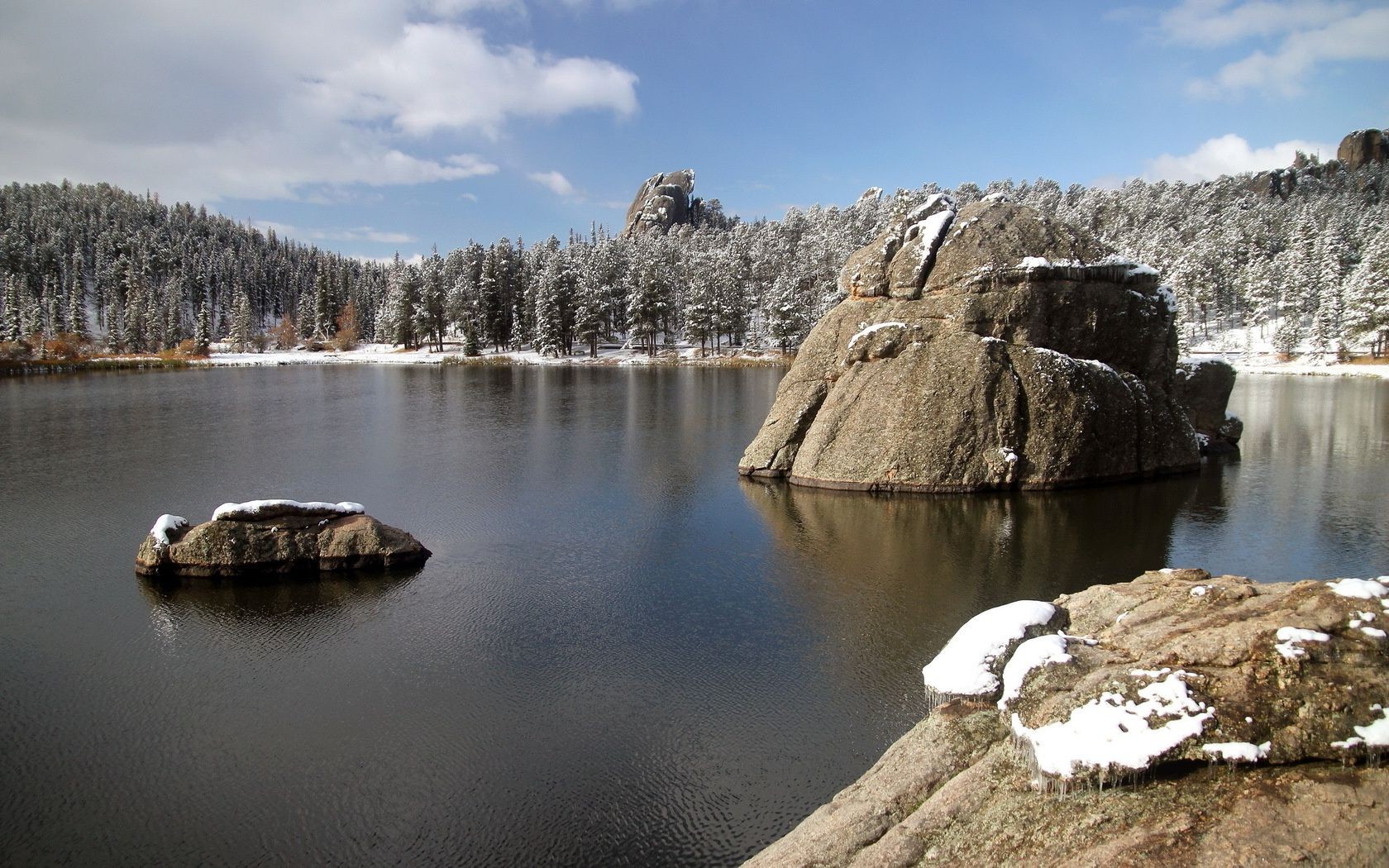 Un lago inusual en invierno con piedras