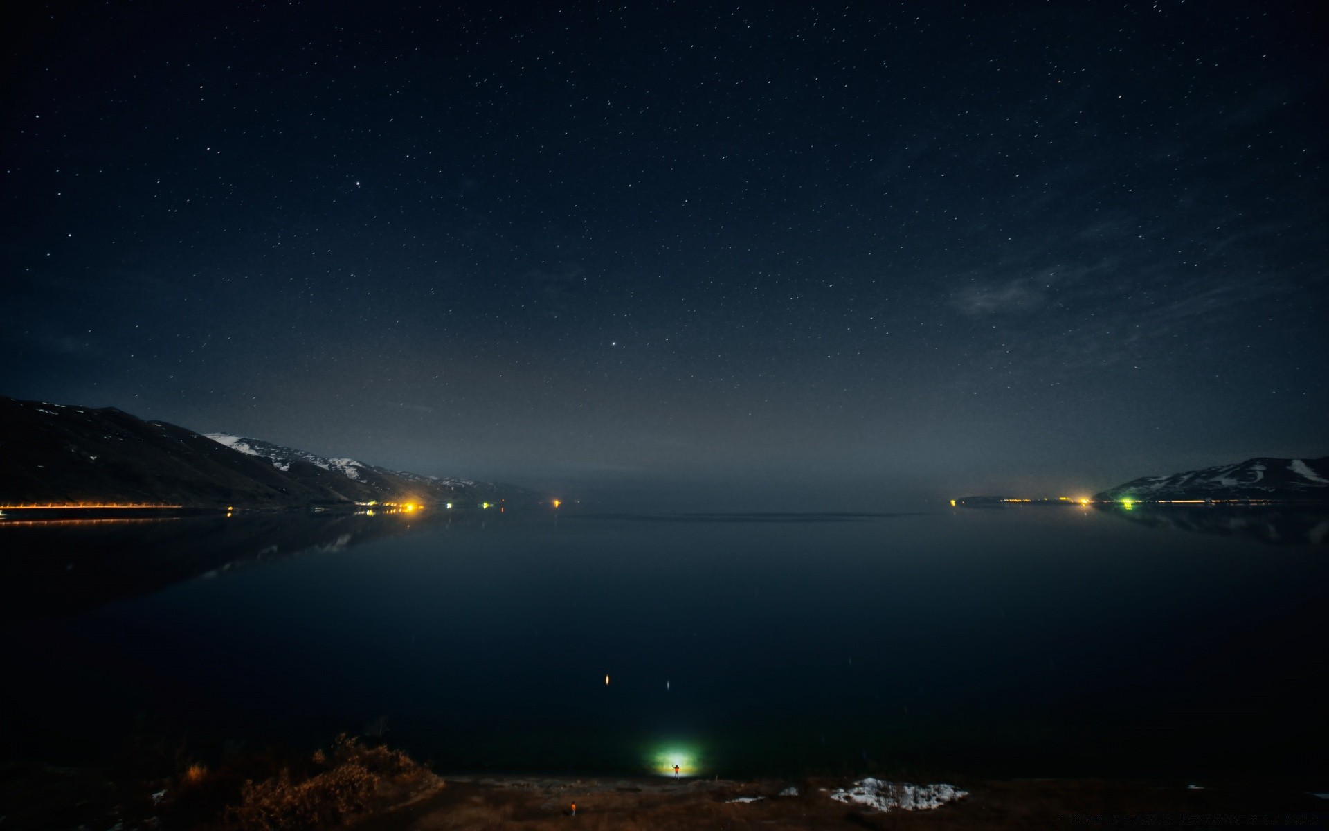 Reflejo de los rayos del sol durante la puesta de sol en el lago