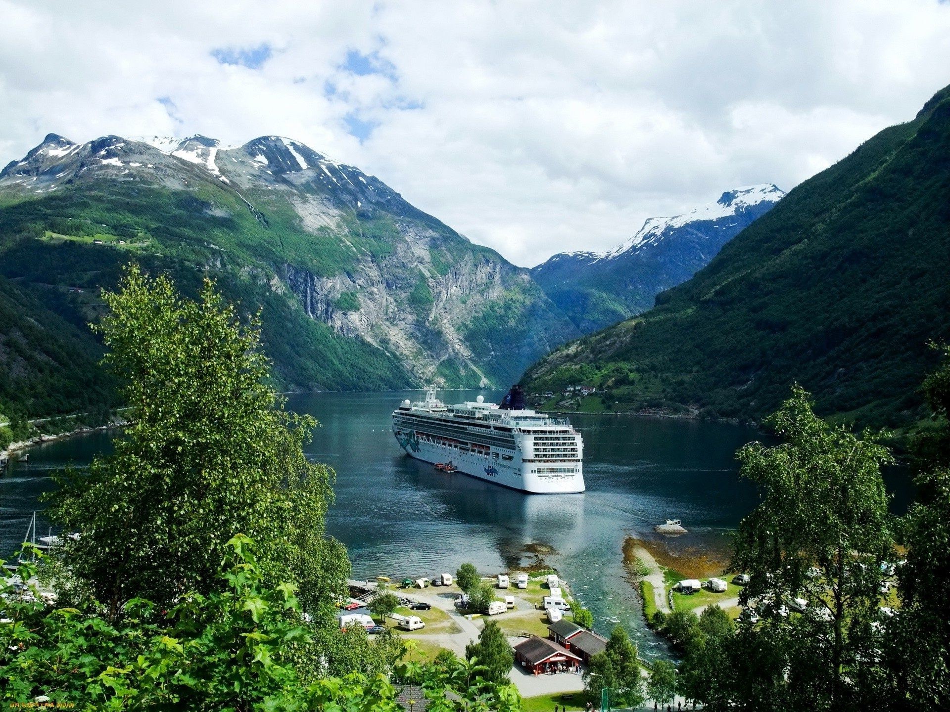 Ford SUV blanco entre el bosque en el fondo de las montañas