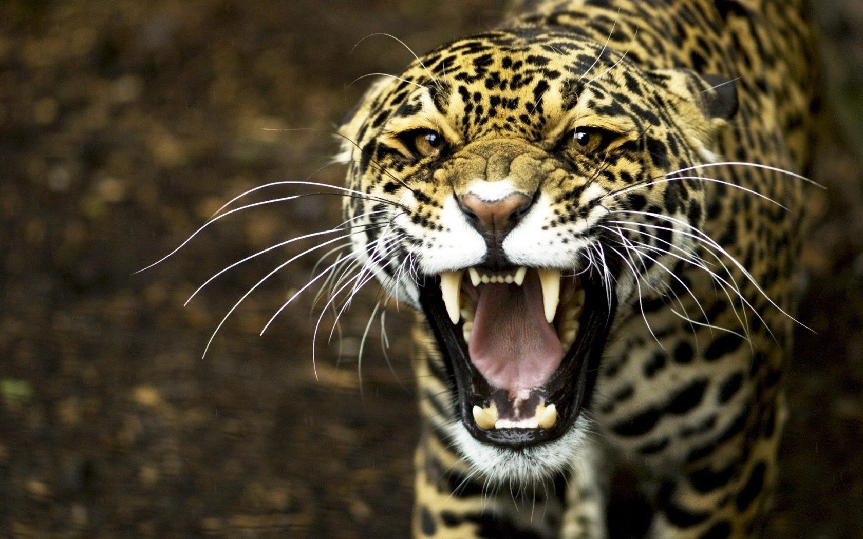 El leopardo ha descubierto sus colmillos. Gato