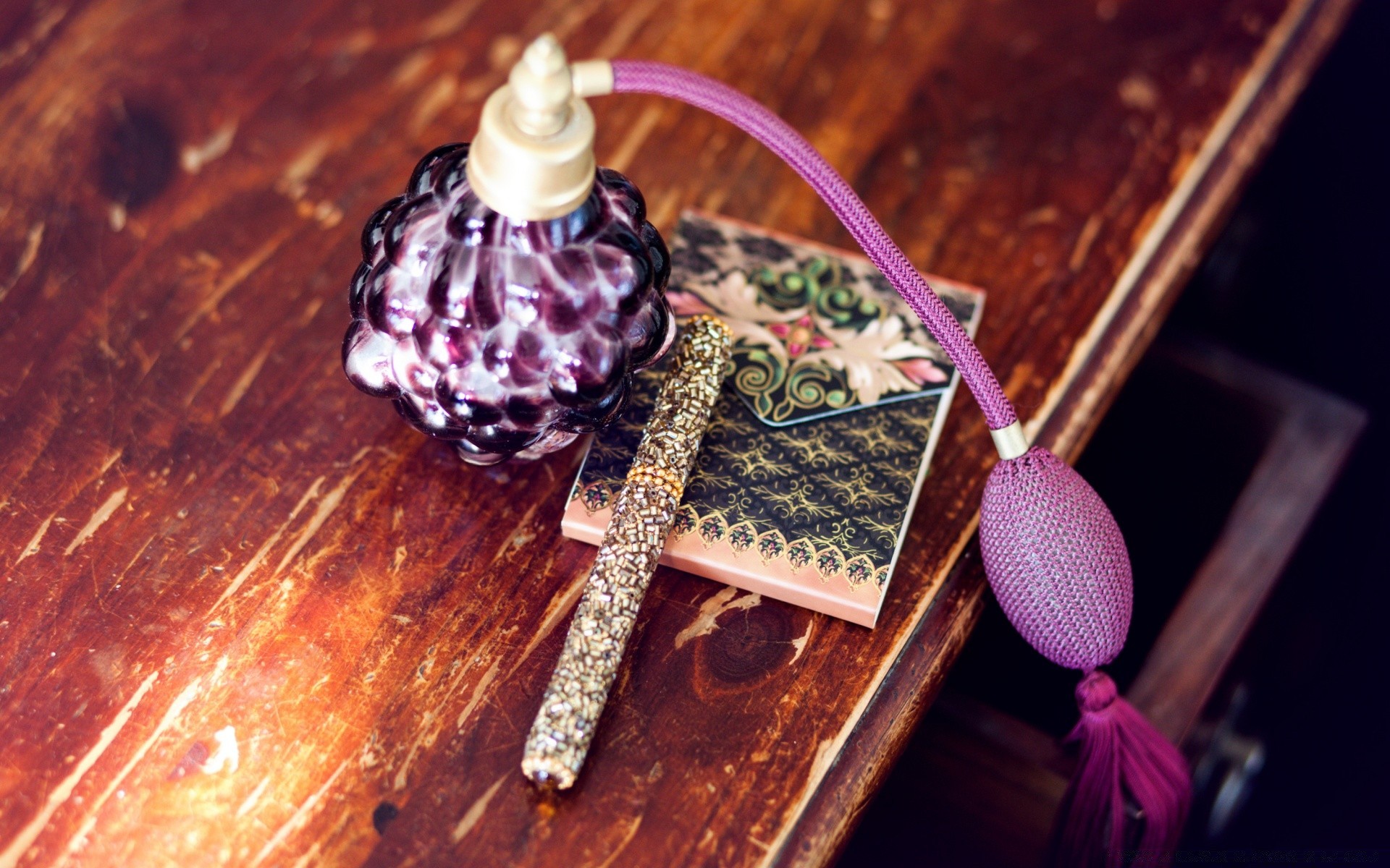 Niebla lila sobre el bosque y las montañas al atardecerNiebla lila sobre el bosque y las montañas al atardecer