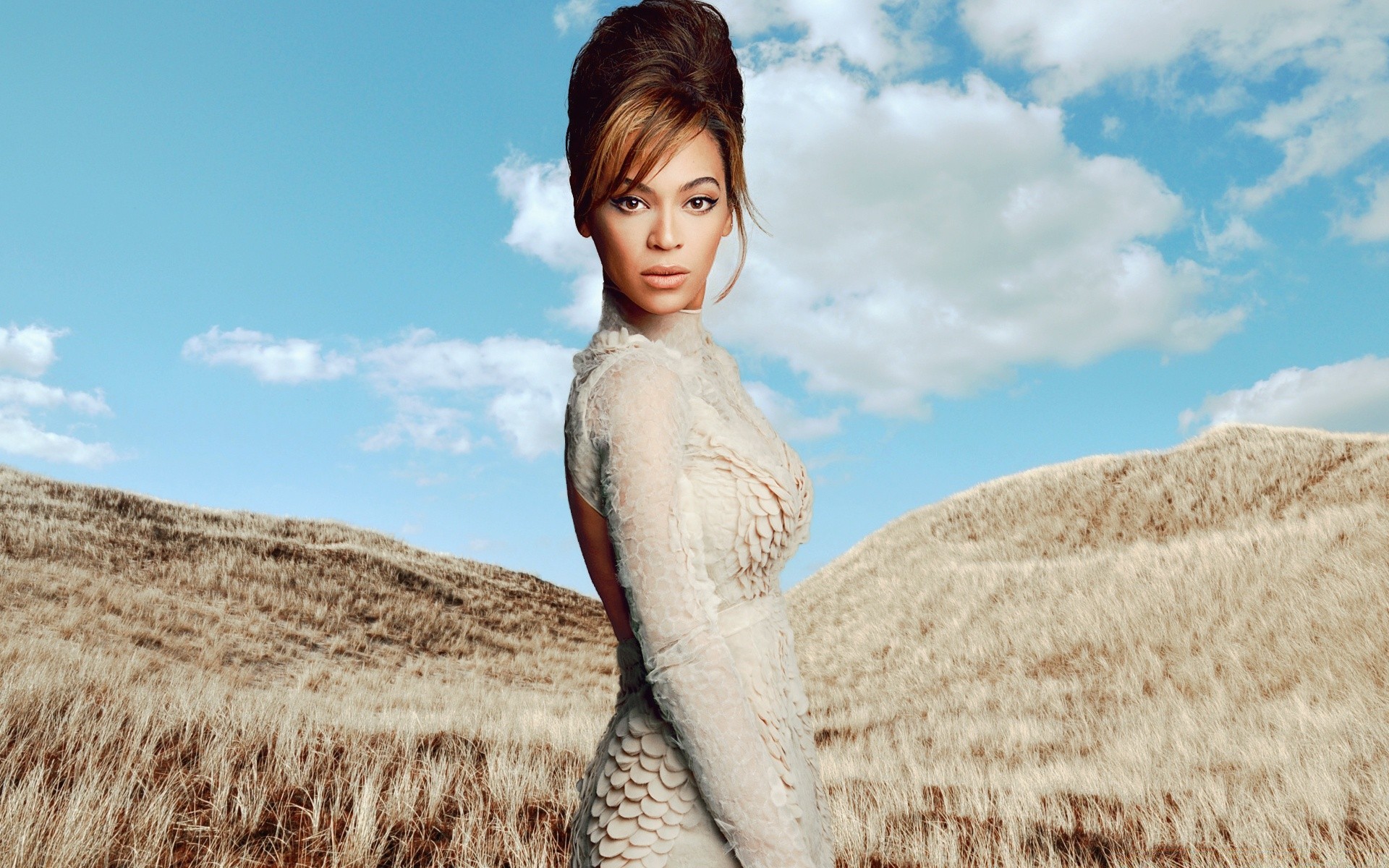 Linda chica en un vestido beige en el fondo de las colinas cubiertas de hierba secaLinda chica en un vestido beige en el fondo de las colinas cubiertas de hierba seca