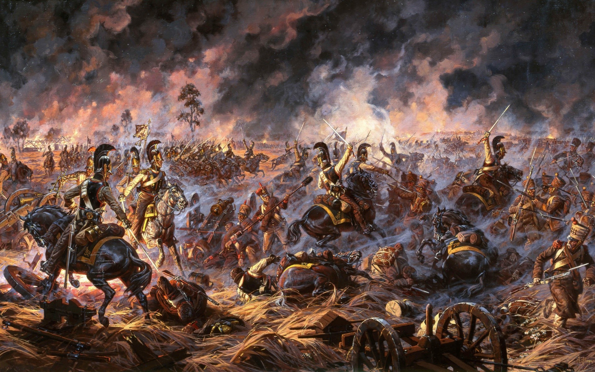 Las llamas de un coche que va en el fondo de un cielo rojo sangre