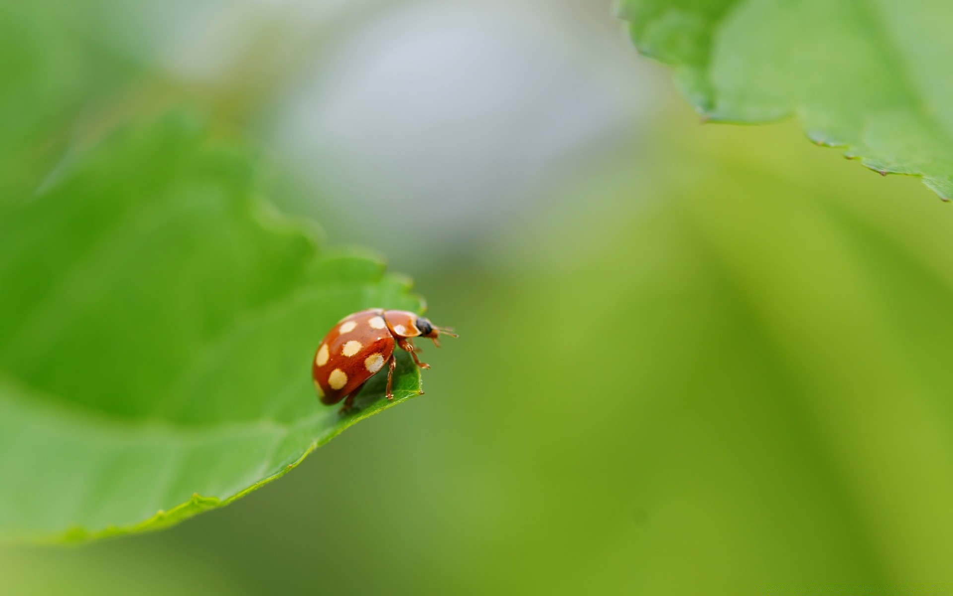Insecto mariquita en la hoja de verano