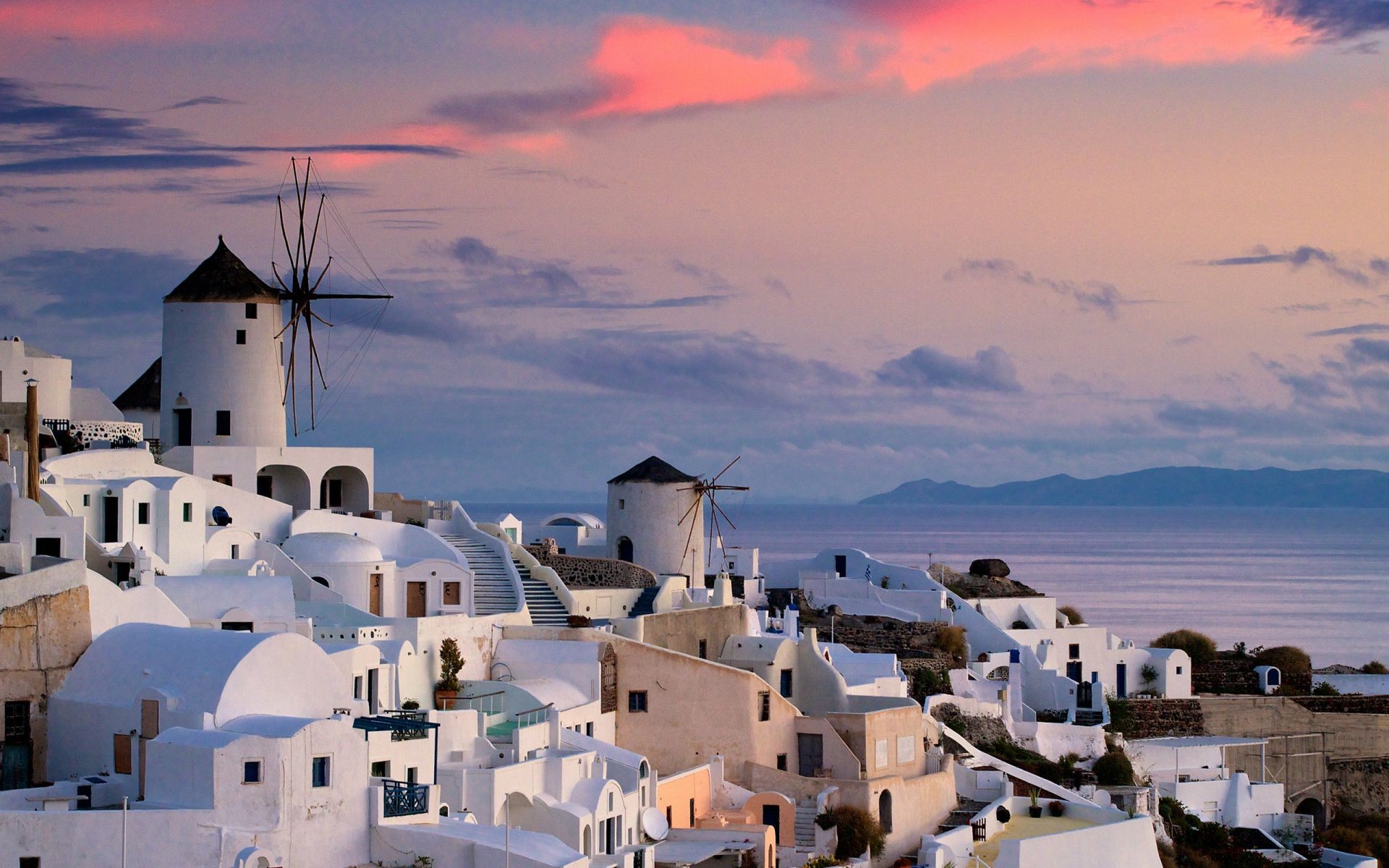 Las paredes blancas de una hermosa ciudad junto al mar en los rayos del atardecer