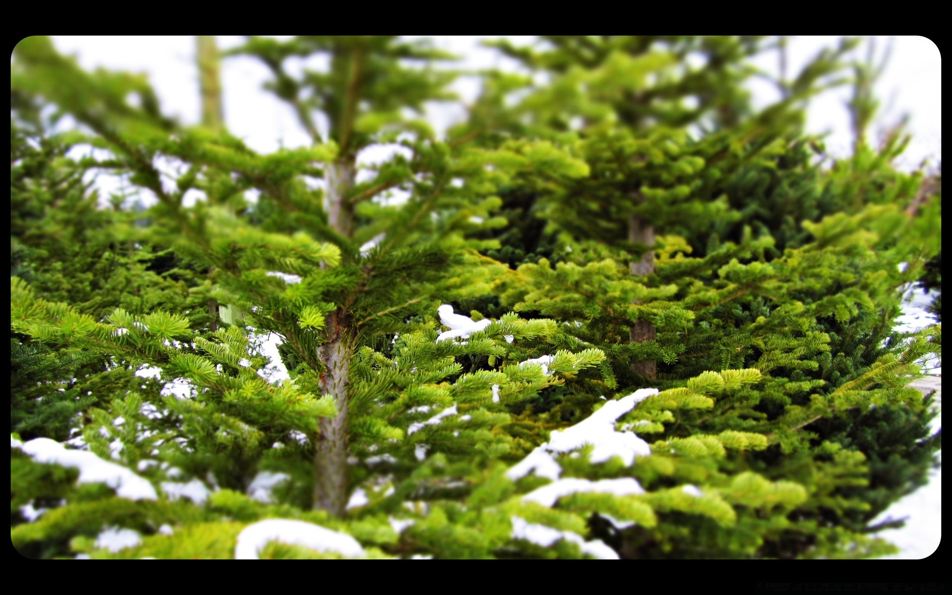 Árboles de Navidad en ropa de nieve en invierno