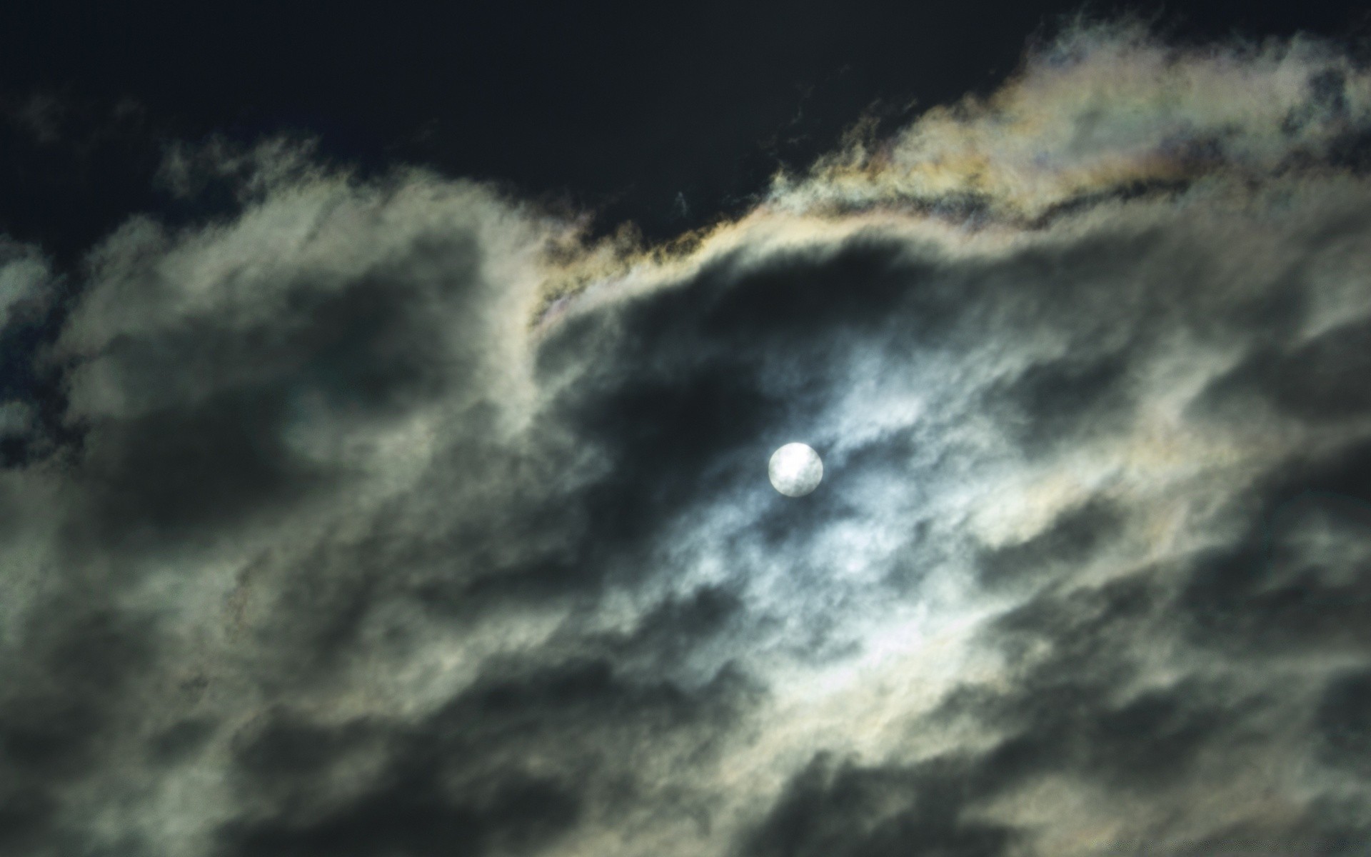 Cielo negro con nubes a punto de cerrar la Luna llena