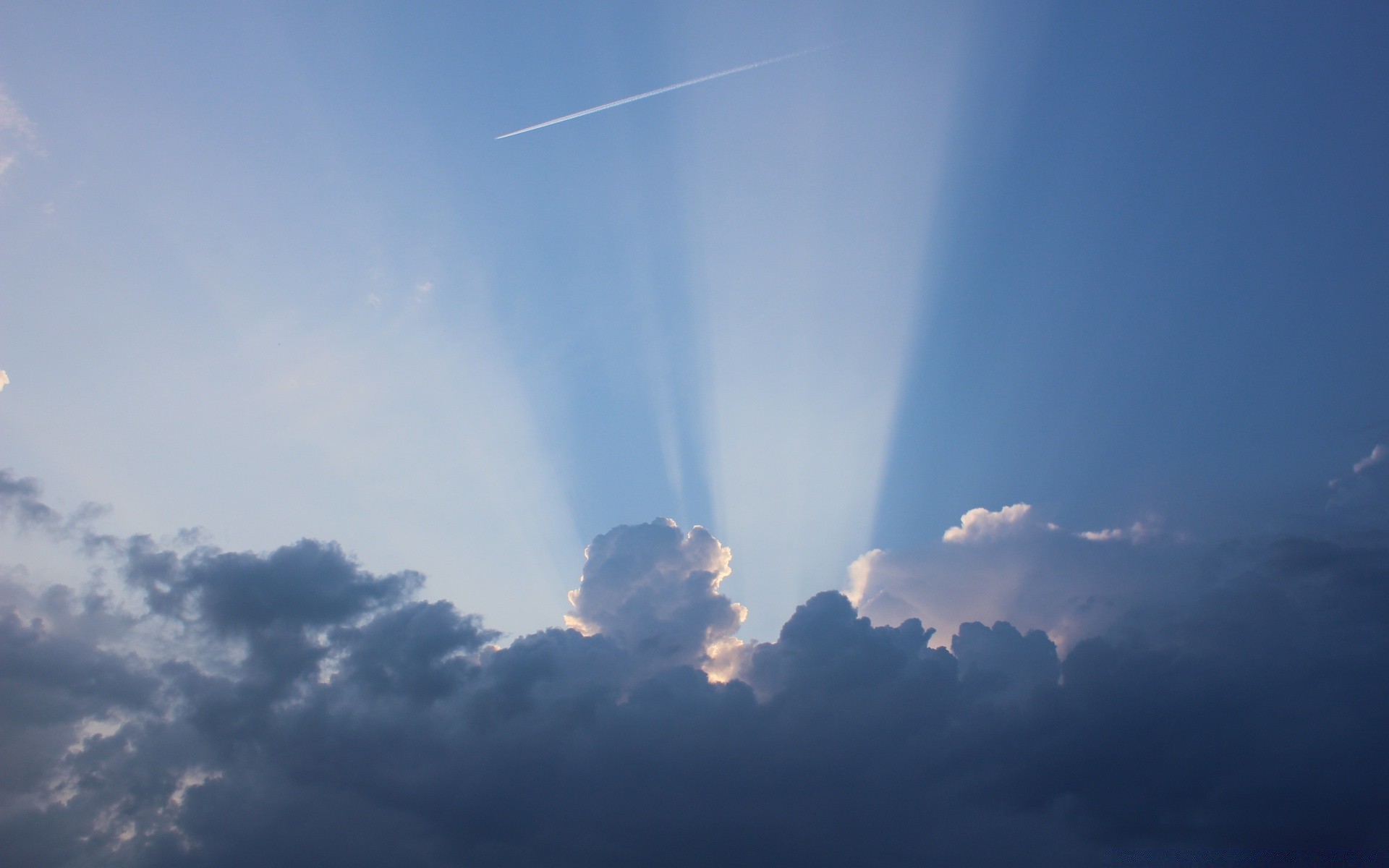 Los rayos del sol se abren paso a través de las nubes sobre las montañas