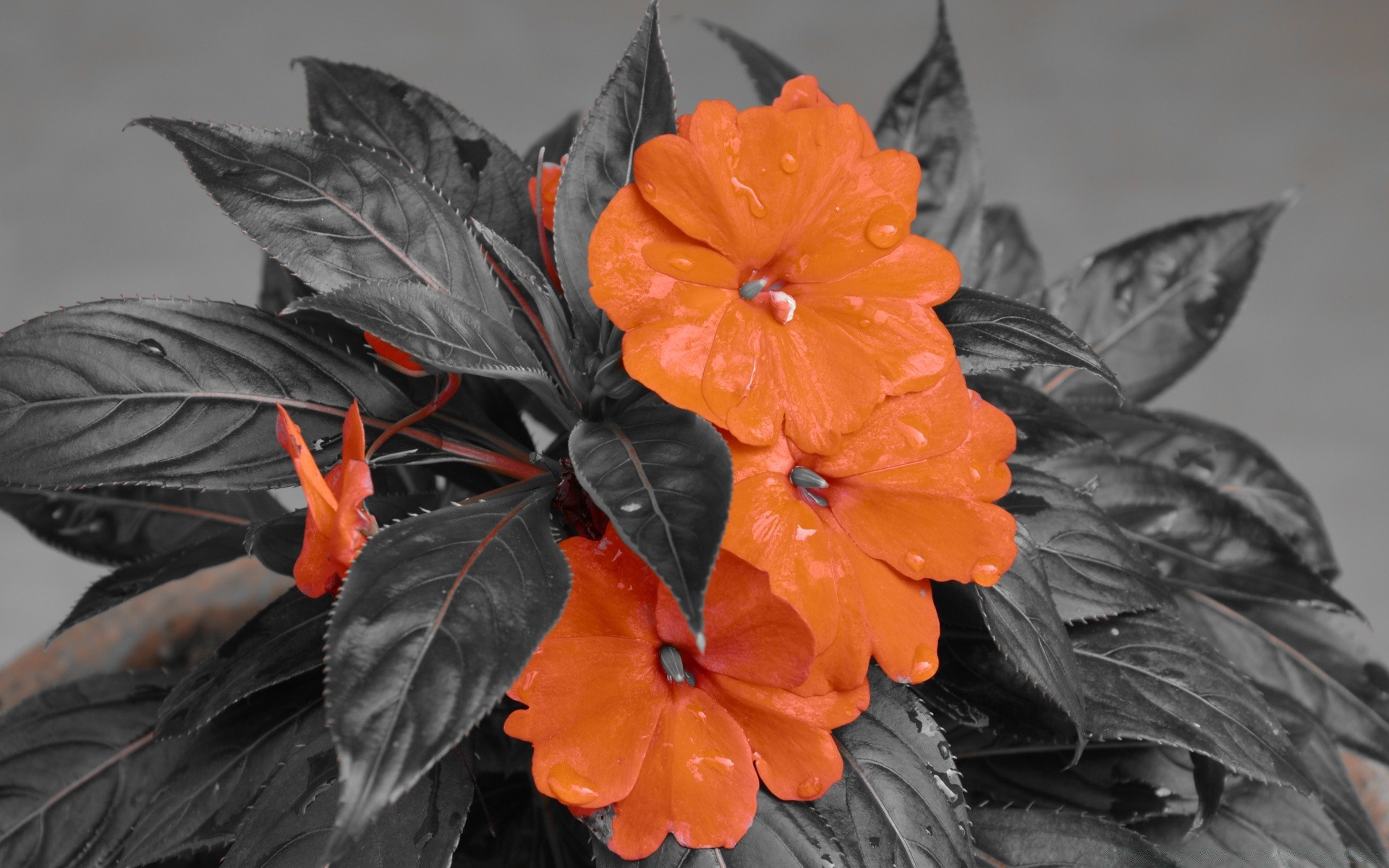 Flores rojas con hojas verdes en macro