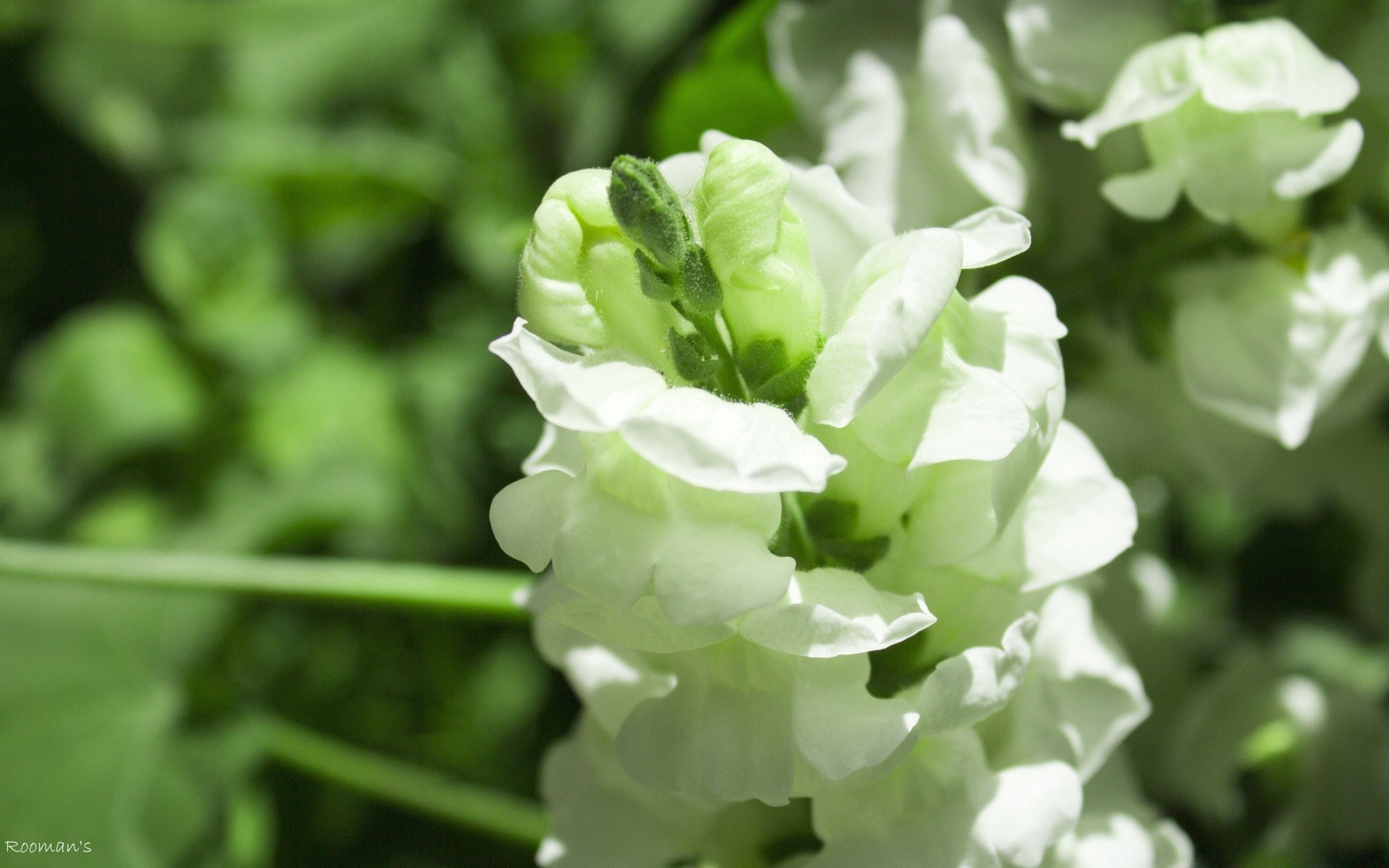 Flor delicada blanca sobre fondo verde macro tiro