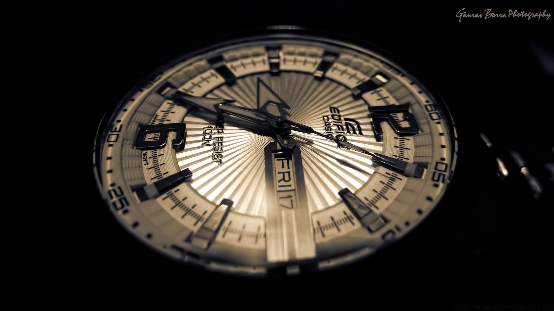 Esfera del reloj con luz de cerca