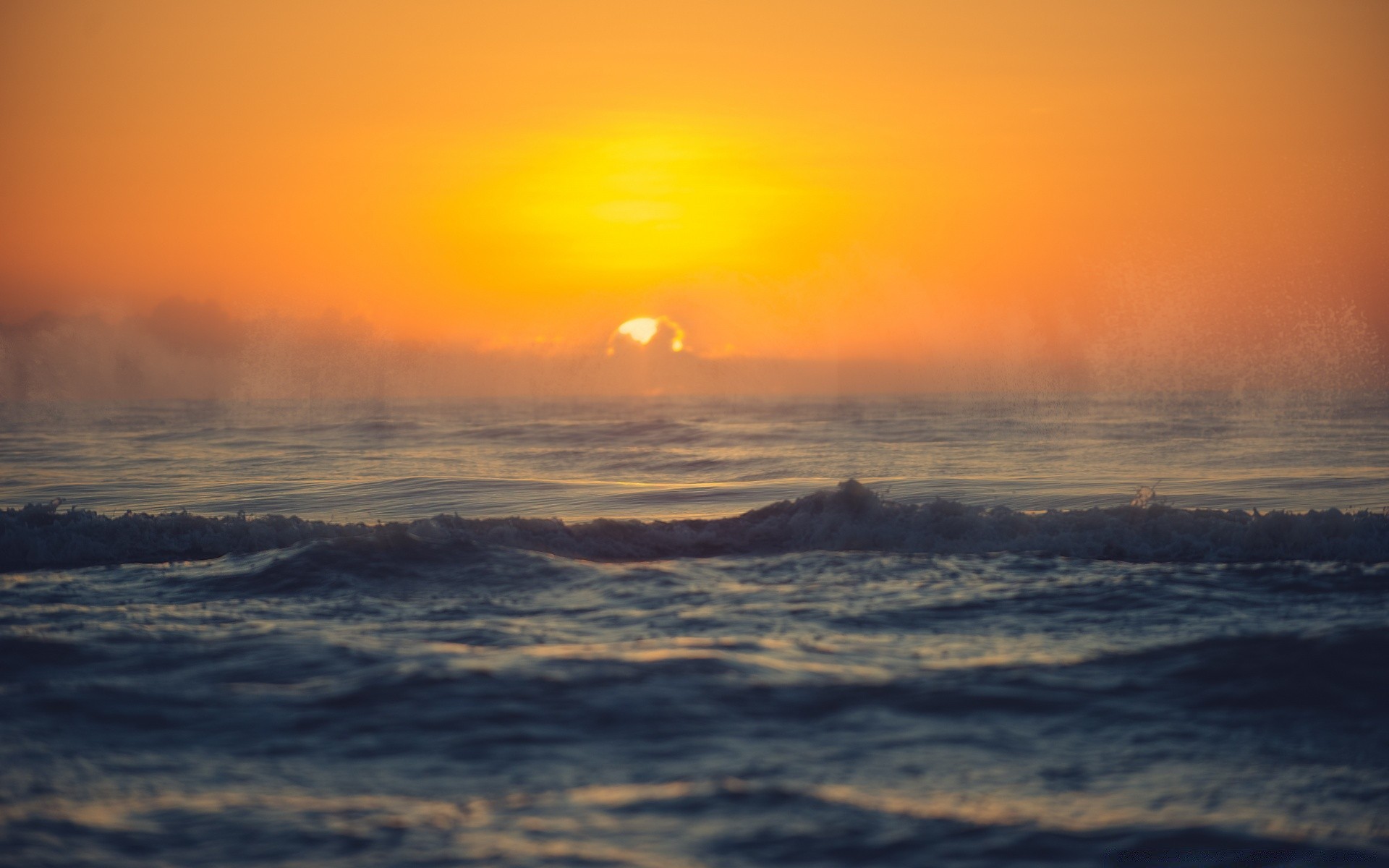 Mar agitado con niebla al amanecer