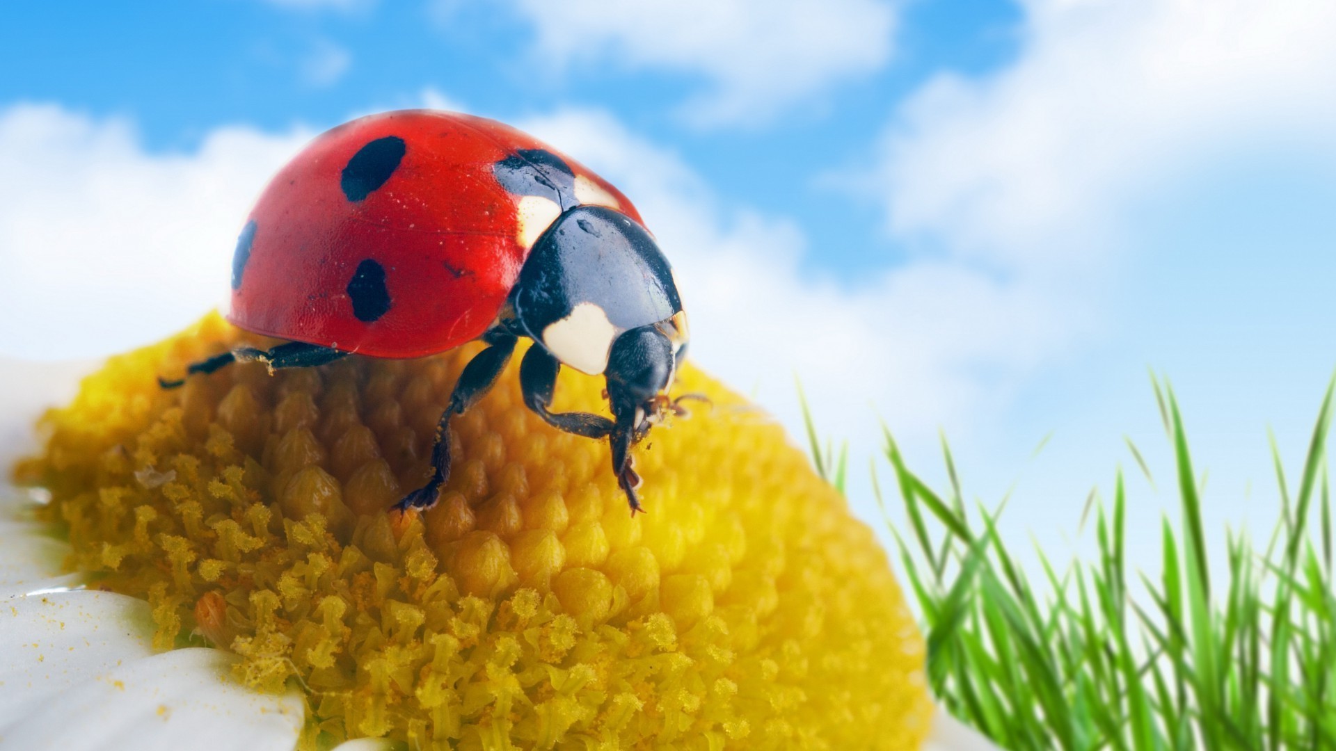 Mariquita en la punta de la hierba