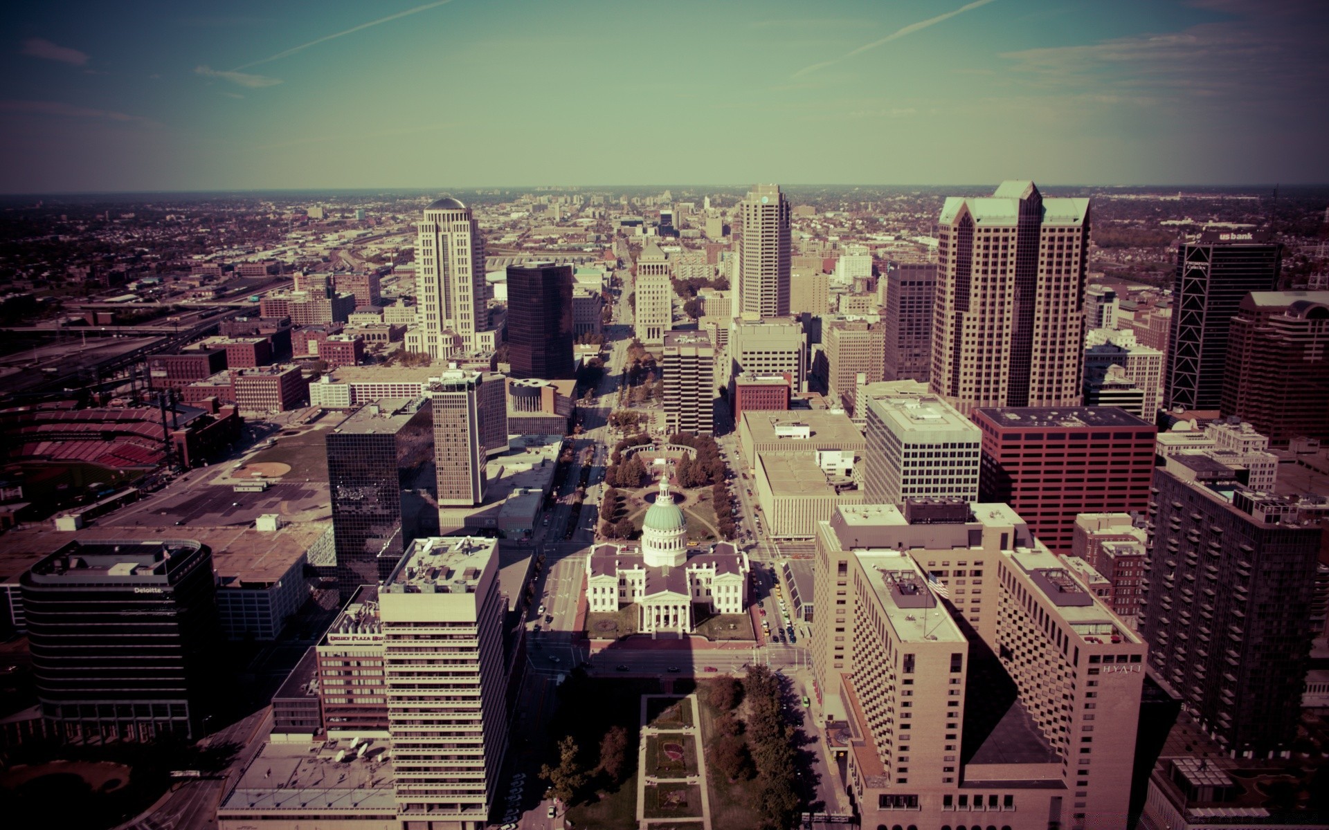 Foto en blanco y negro de rascacielos con acentos amarillos