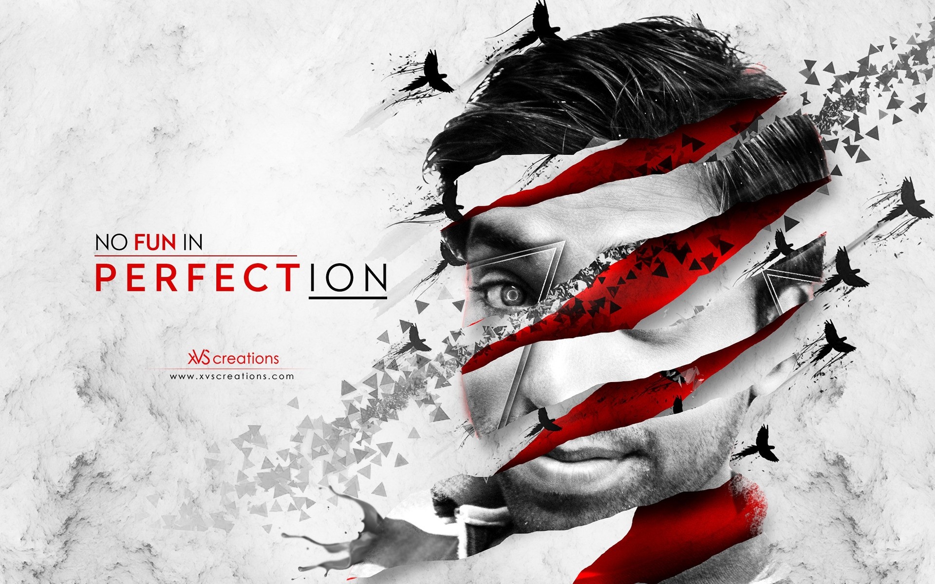 Foto de un hombre sobre un fondo blanco en forma de cortes