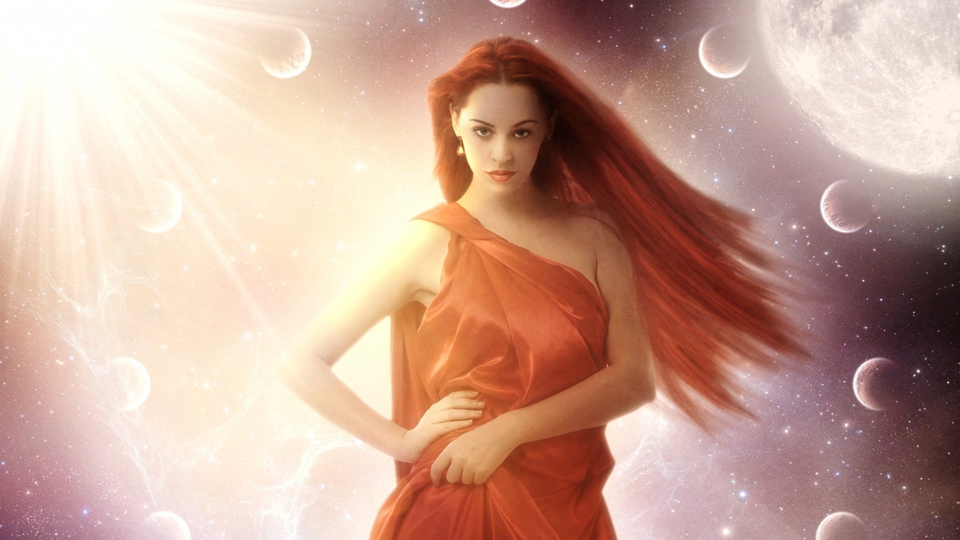 Hermosa chica en el espacio de fondo