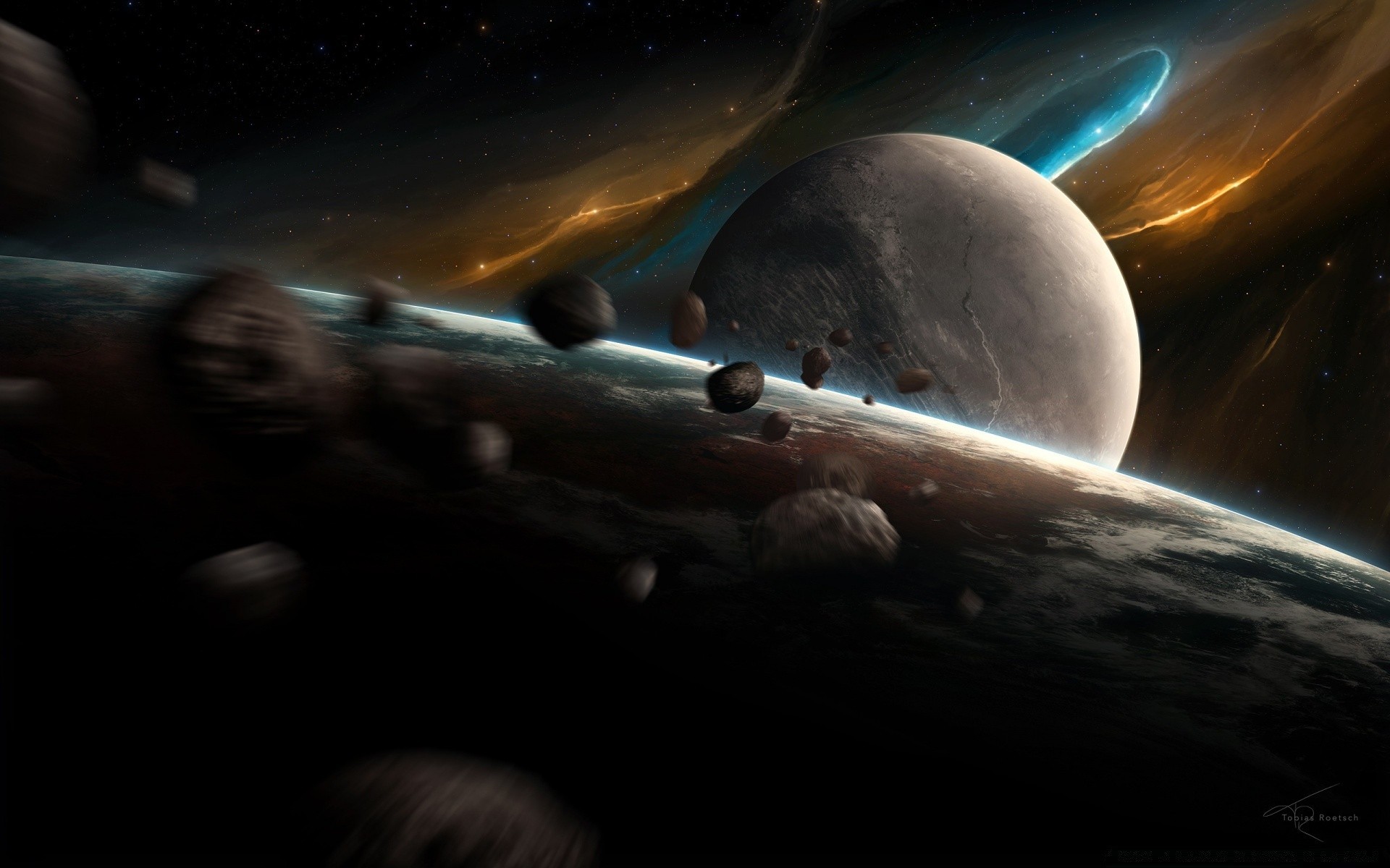 Vista de la Luna desde el cinturón de asteroides de otro planeta