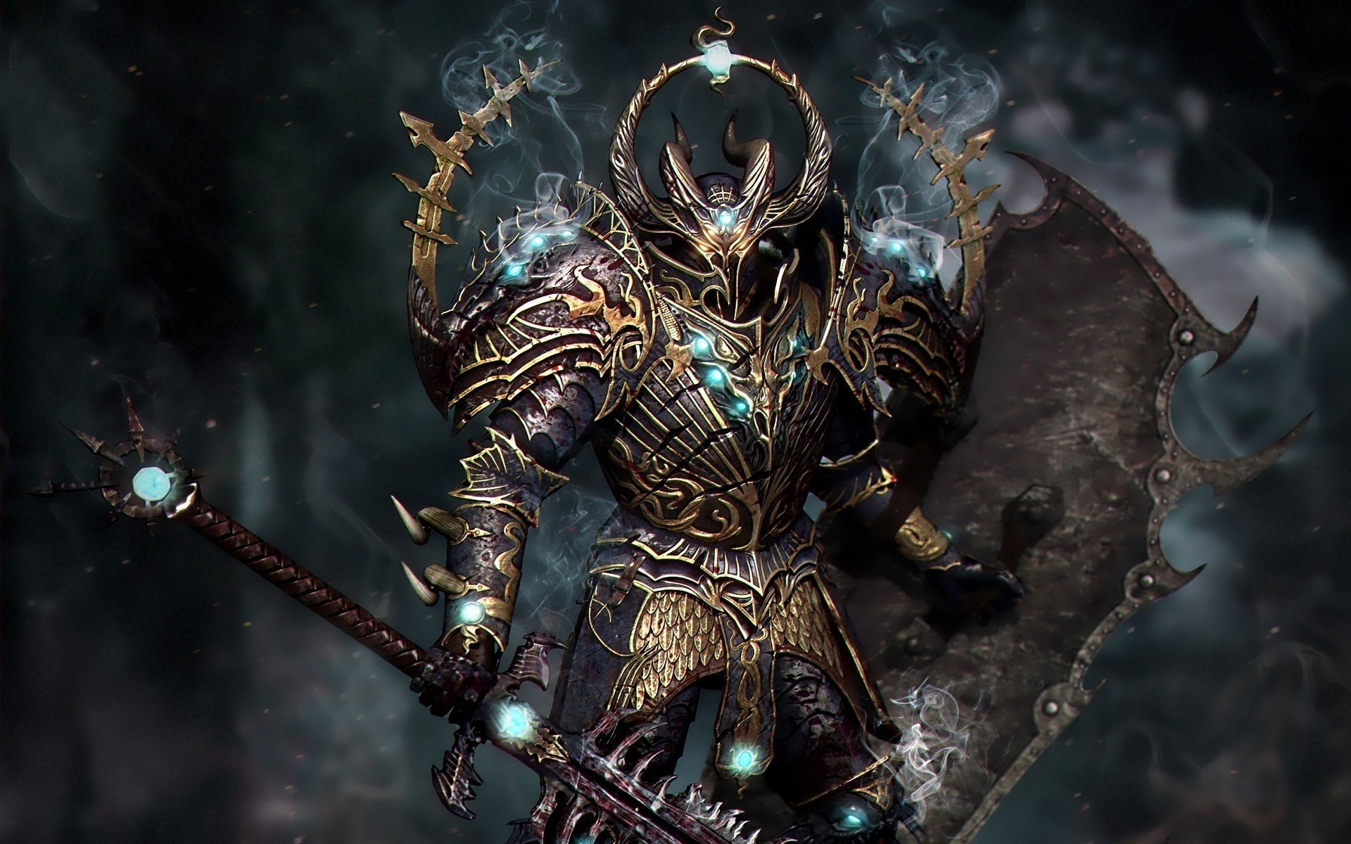 Un caballero con una espada se encuentra en medio del humo