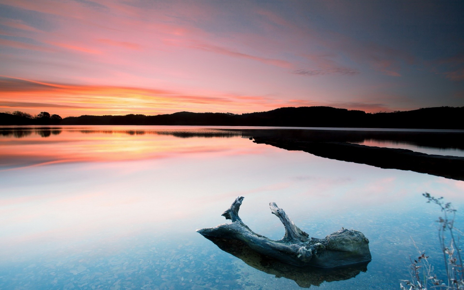 Madera flotante en medio de un lago limpio