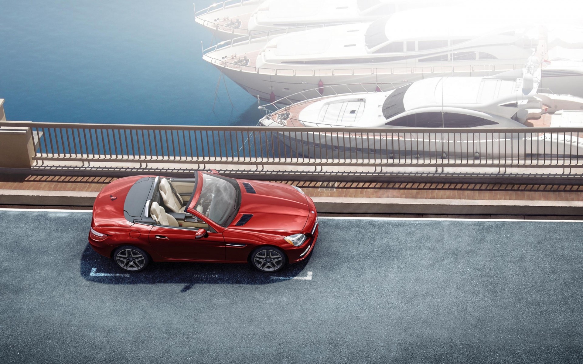 Coche con estilo cerca del edificio de la ciudadcoche deportivo marca mercede
