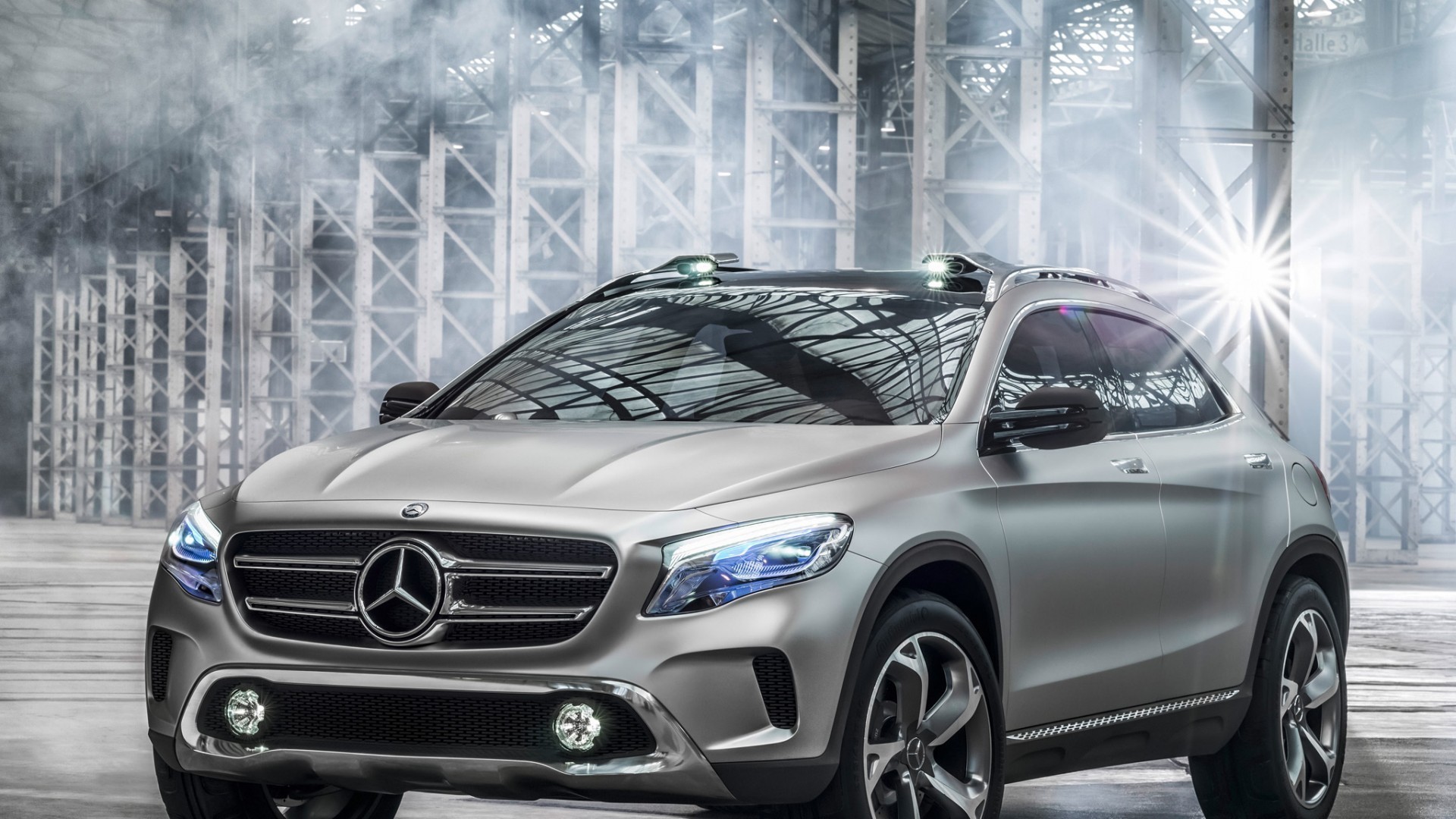 El coche de Mercedes en el fondo de las estructuras de hierro