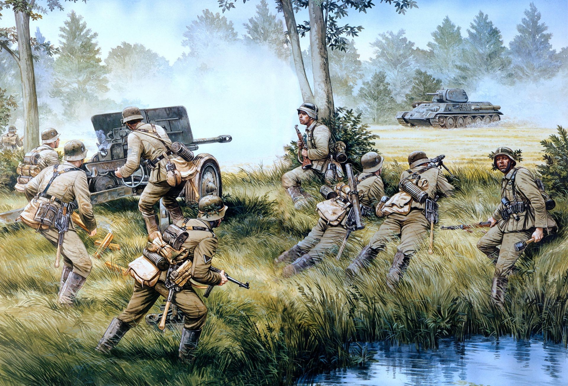 Militares en el humo caliente