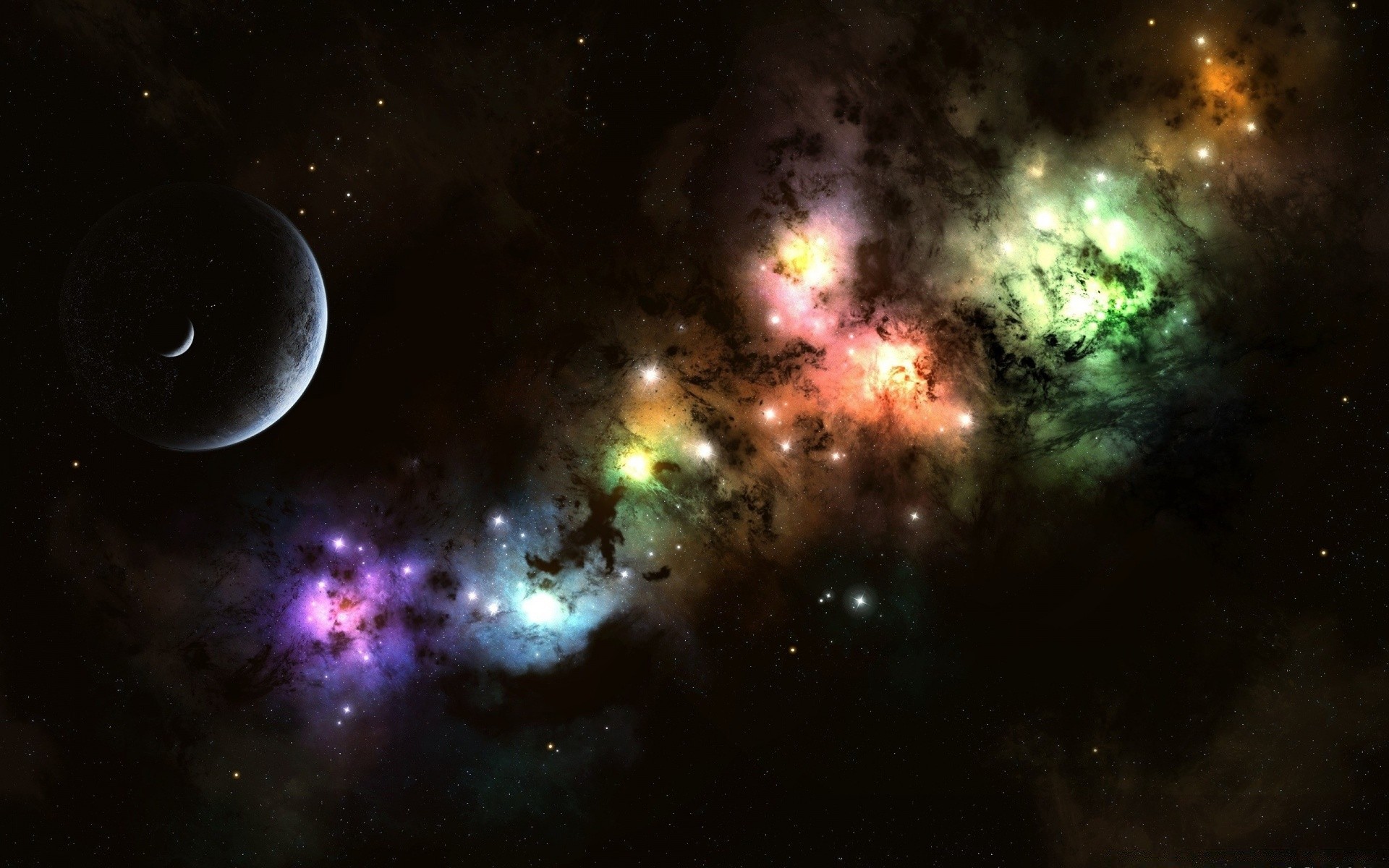 Paisaje de belleza inusual con la Luna escondida entre dos árboles en la sombra