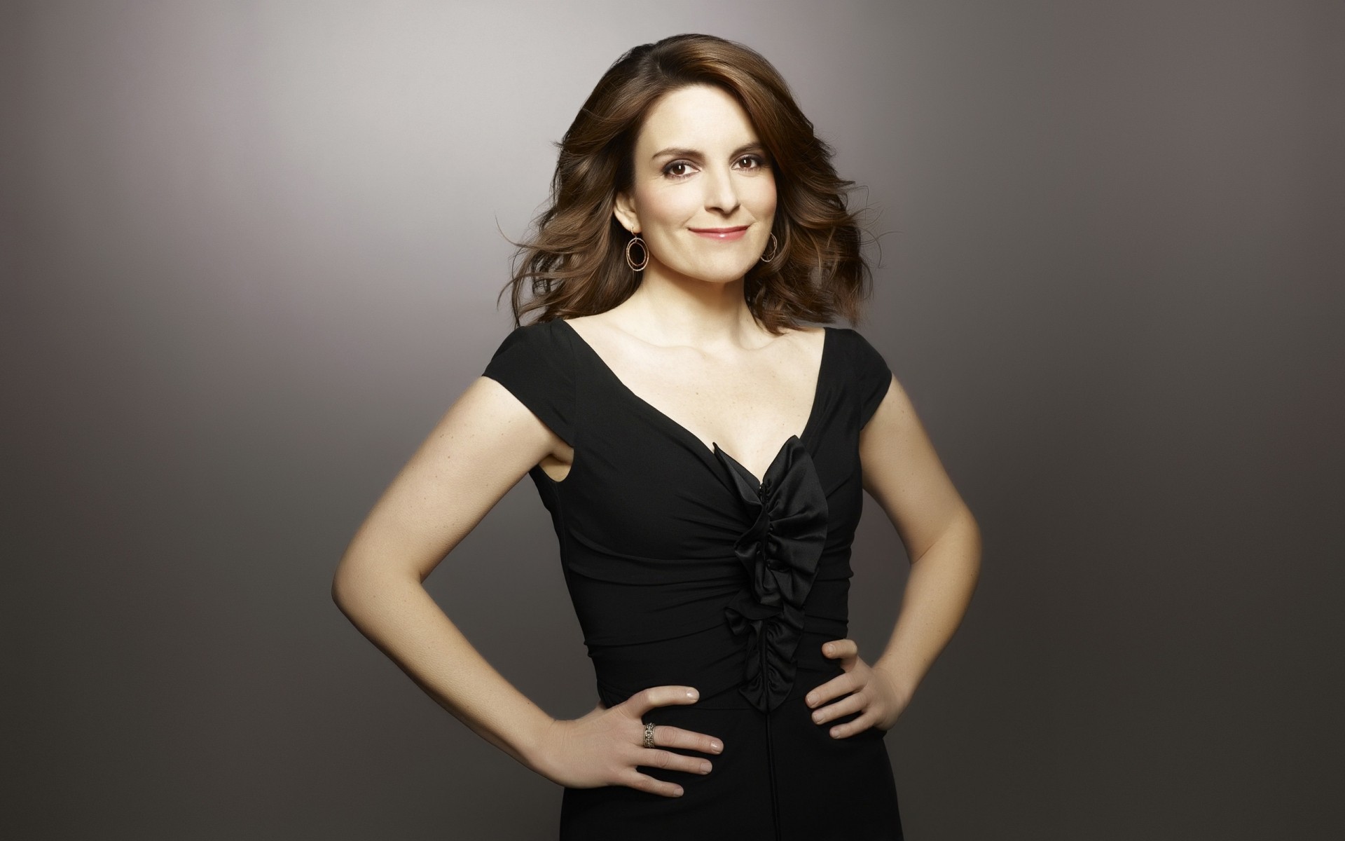 Modelo en vestido de cuero posando