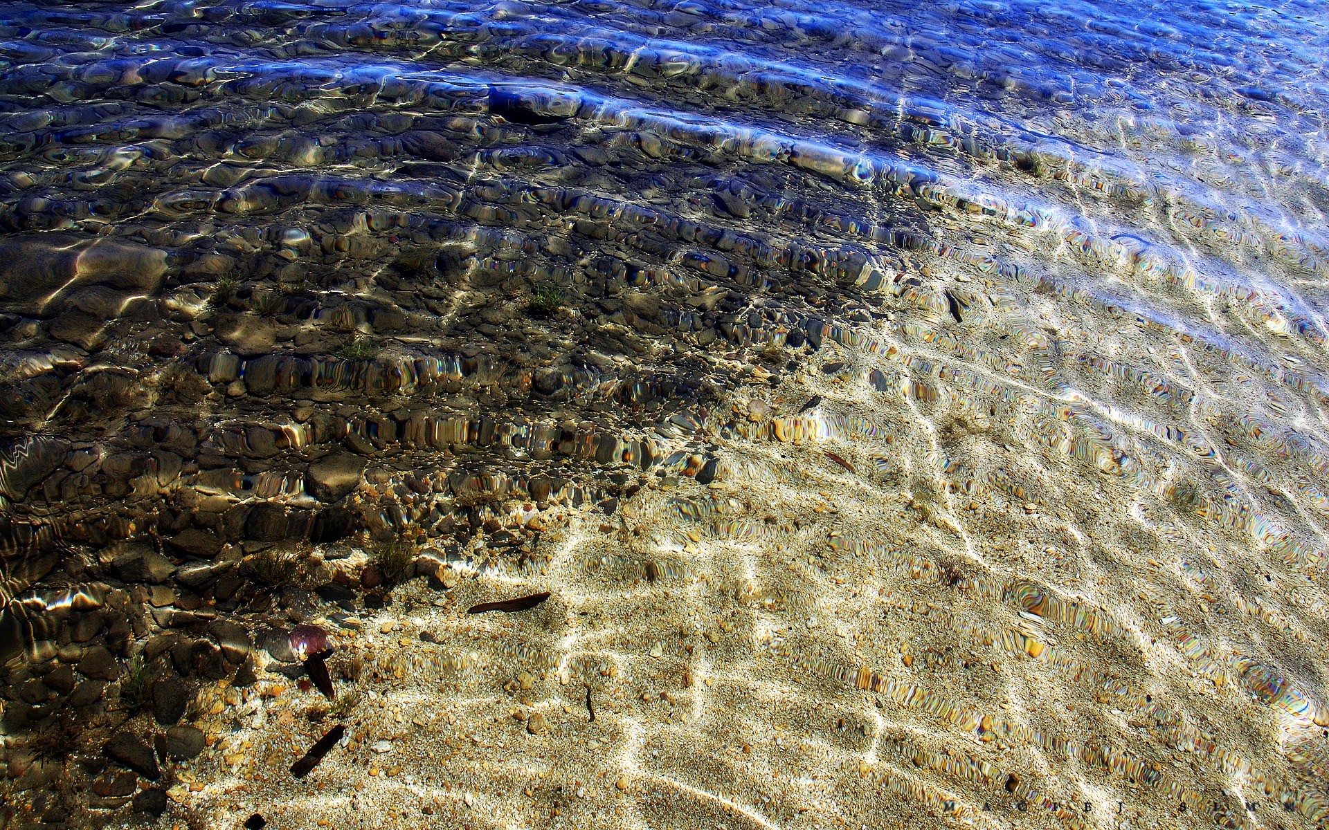 Chica delgada en traje de baño camina sobre el aguaChica delgada en traje de baño camina sobre el agua