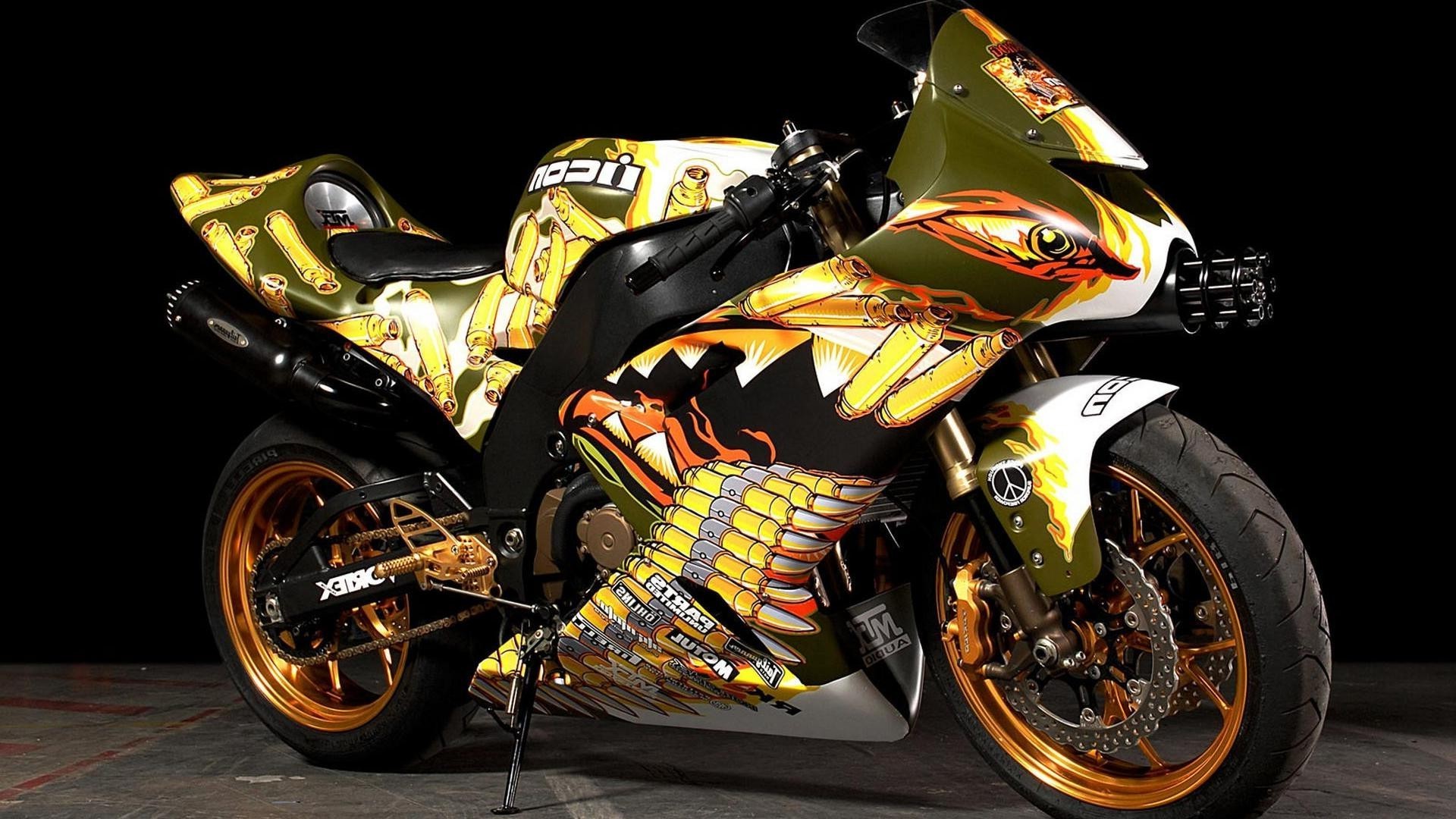 Chica de fantasía en una motocicleta en el fondo de zakatanor