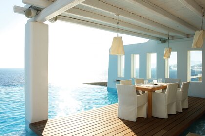 Hotel paradisíaco en la playa en los trópicos