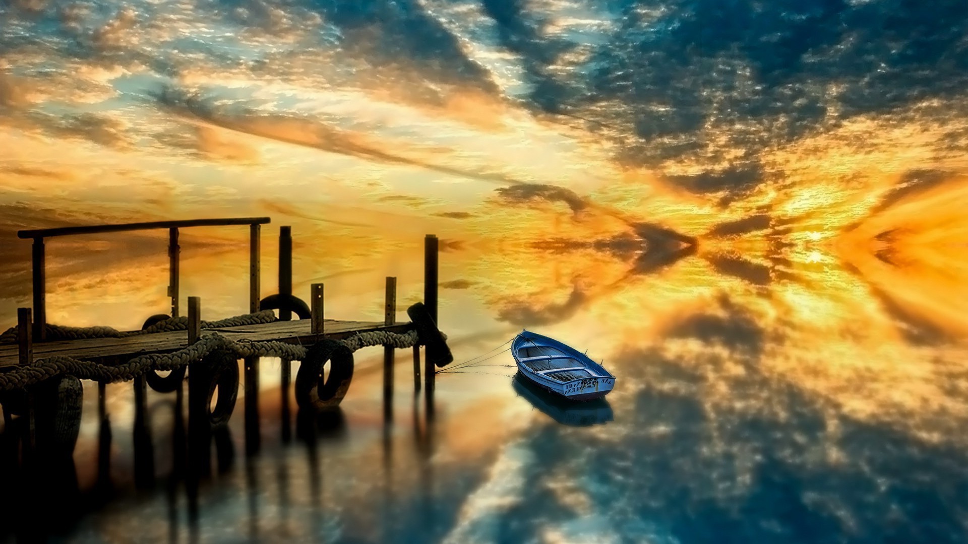 Puesta de sol y reflejo de agua en el océano con vallasPuesta de sol y reflejo de agua en el océano con vallas