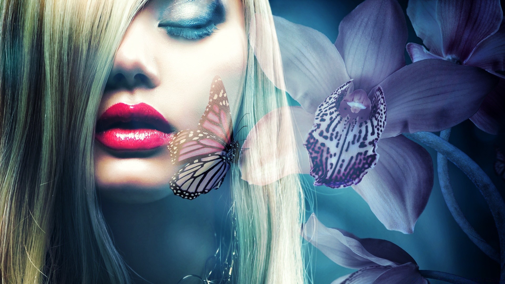 Hermosa mujer joven en un fondo borroso abstracto. Pintura
