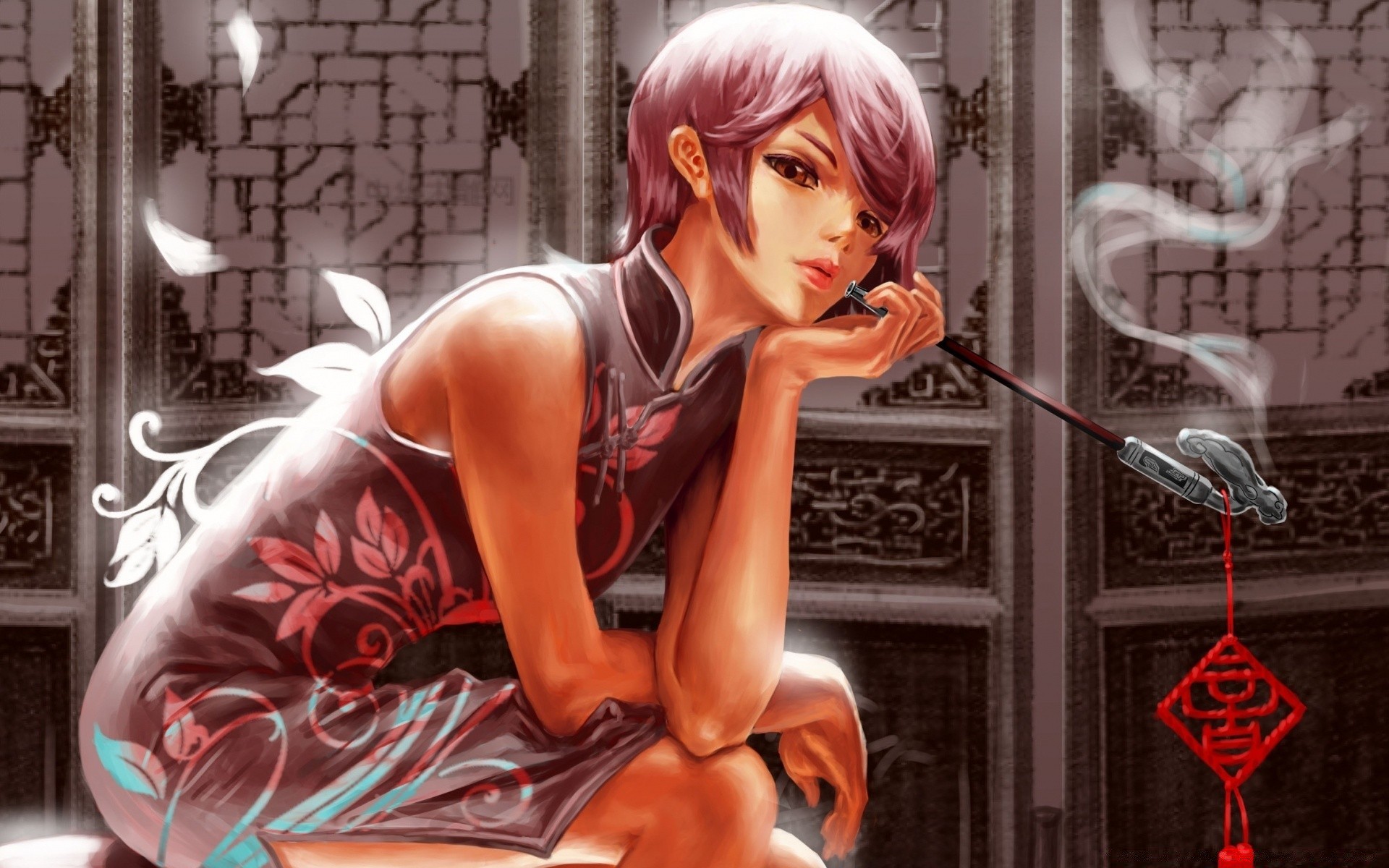 Anime mujer en el negocio de interior