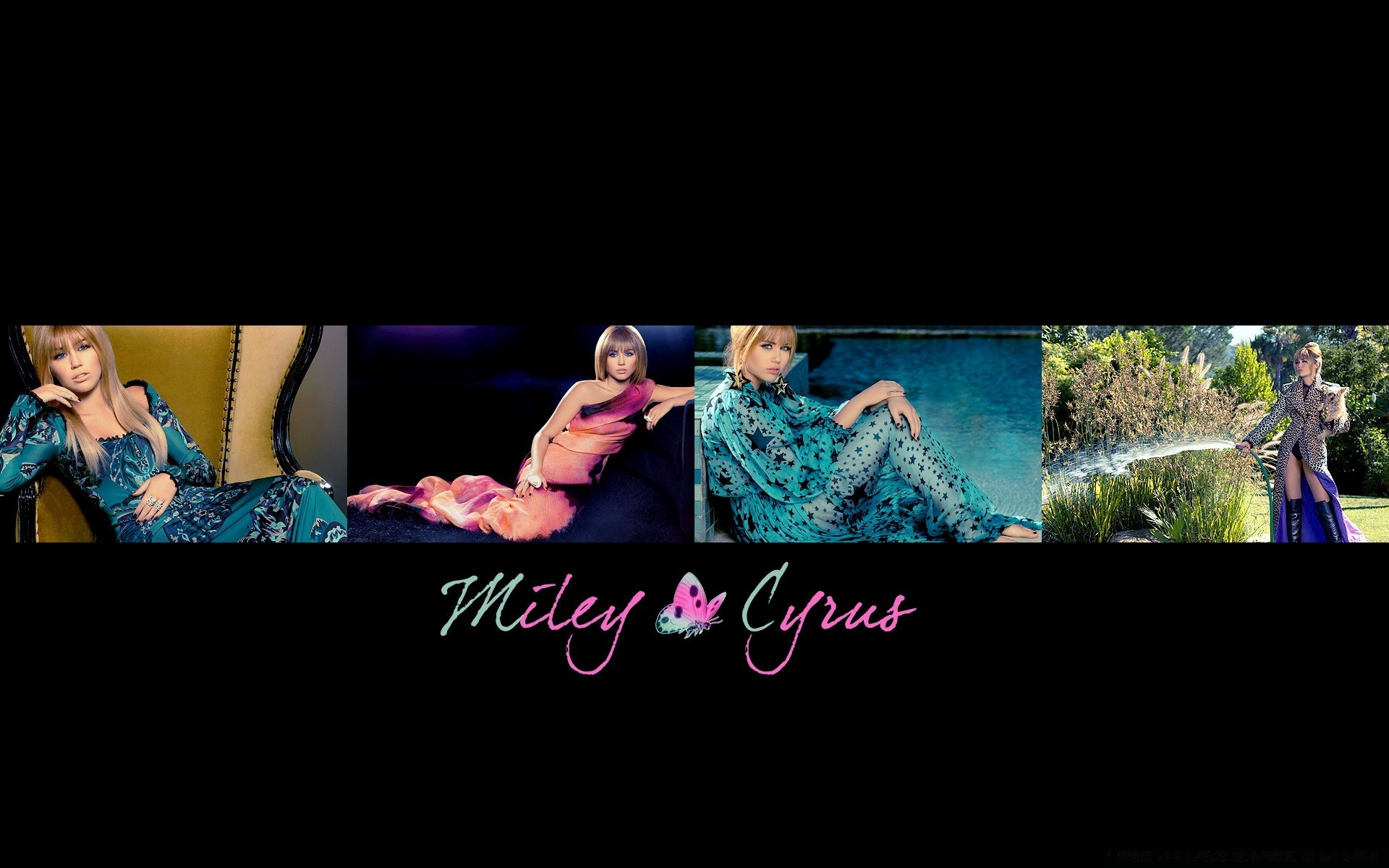 Sobre un fondo negro cuatro fotos de mujeres rubias con diferentes ropas