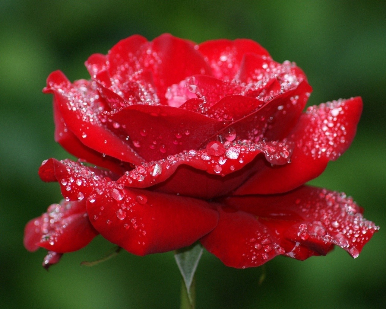 Capullo de rosa con gotas de agua sobre un fondo verde