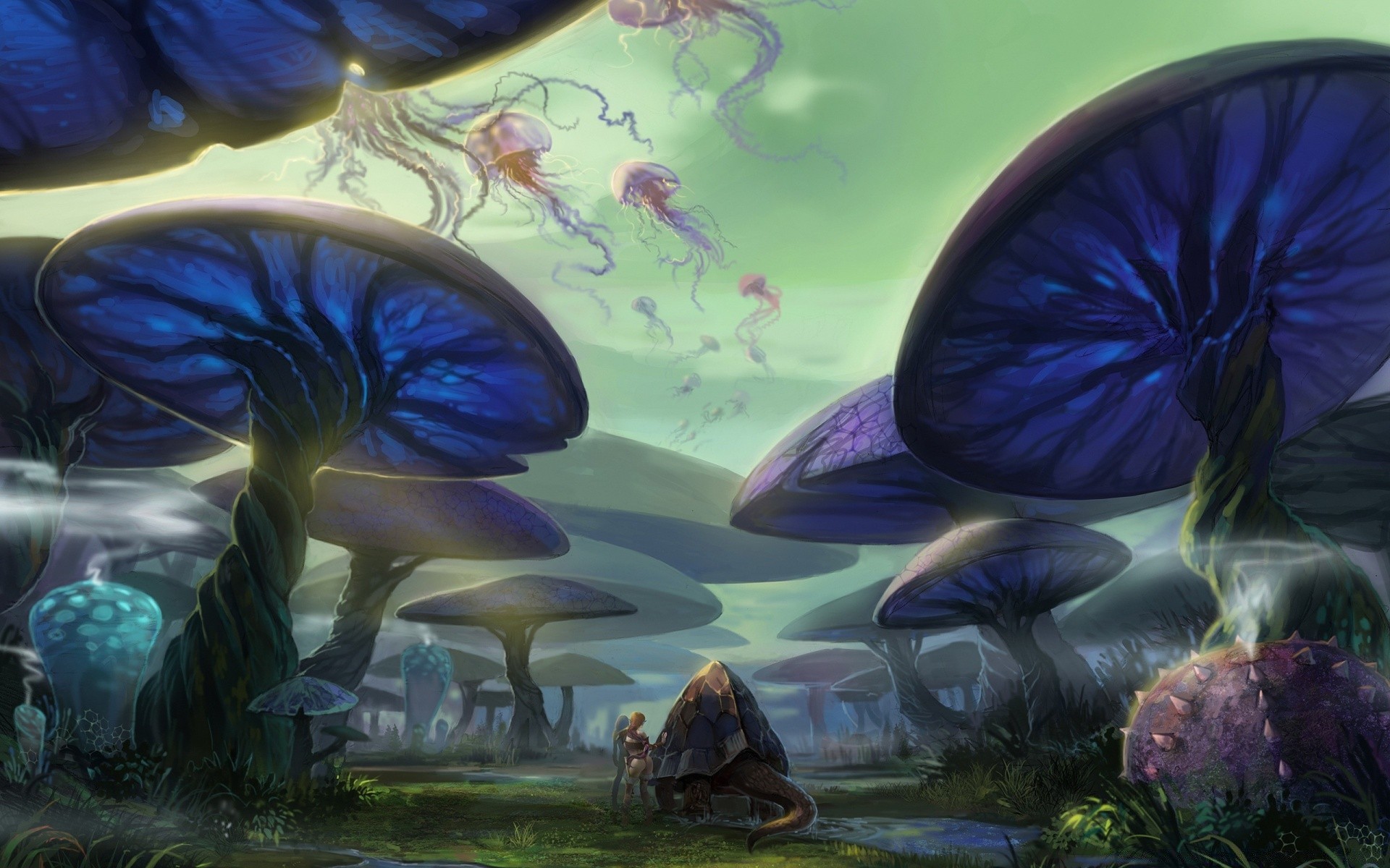 Árboles en el estilo de la noche de cuento de hadas del mundo